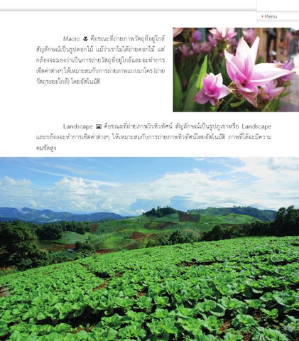 Landscape คือขณะที่ถ่ำยภำพวิวทิวทัศน์ สัญลักษณ์เป็นรูปภูเขำหรือ Landscape และกล้องจะท�ำกำรเซ็ตค่ำต่ำงๆ ให้เหมำะสมกับกำรถ่ำยภำพทิวทัศน์โดยอัตโนมัติ ภำพที่ได้จะม่ีควำม คมชัดสูง