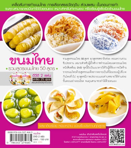 รวมสูตรขนมไทย 50 สูตร ทุกสูตรรสชาติอร อย หอมหวานชวน รับประทาน เหมาะสำหรับผูม ใี จรักการทำขนมโดยเฉพาะขนมไทย หนังสือพร อม DVD ชุดนีย้ งั เป นแนวทางให กบั ผูท ต่ี อ งการเป ดร าน ขายขนมไทยด วยสูตรขนมที่หลากหลายเป นที่นิยมของผู บริโภค กันโดยทั่วไป ทุกสูตรมีภาพประกอบและคำบรรยายวิธีทำแต ละ ขั้นตอนอย างละเอียด จนคุณสามารถทำได ด วยตนเอง