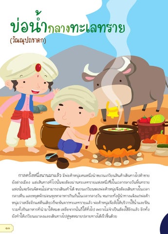 ยังต่างเมือง แต่เส้นทางที่ ไปนั้นจะต้องผ่านทะเลทรายแห่งหนึง่ ซึ่งในเวลากลางวันพื้นทราย แห่งนัน้ จะร้อนจั ดจนไม่สามารถเดินเท้าได้ ขบวนเกวียนของพ่อค้าหนุม่ จึงต้องเดินทางในเวลา กลางคืน และหยุดพั กผ่อนหุงหาอาหารกินกันในเวลากลางวัน จนกระทั ่งผูน้ ำ� ทางแจ้งแก่พ อ่ ค้า หนุม่ ว่าเหลืออีกแค่คนื เดี ยวก็จะพ้นจากทะเลทรายแล้ว พ่อค้าหนุม่ จึงสัง่ ให้บริ วารใช้นำ�้ และฟืน รวมทั ้ งกินอาหารที่ น�ำมาให้หมด เหลือจากนั้นก็ ให้ทิ้งไป เพราะไม่จ�ำเป็นต้องใช้อีกแล้ว อีกทั ้ ง ยังท�ำให้เกวียนเบาลงและเดินทางไปสู่จุดหมายปลายทางได้เร็วขึ้นด้วย 10