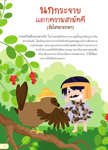หลายพั นตัว โดยมีพญานกกระจาบเป็นหัวหน้าฝูงคอยดูแลบริ วารด้วยความ ผาสุกตลอดมา ต่อมาพญานกกระจาบสังเกตเห็นว่ามีบริ วารนกกระจาบ หายไปจ�ำนวนหนึง่ จึงรีบสืบหาสาเหตุ พบว่ามีนายพรานคนหนึง่ เข้ามาจั บนกกระจาบไปขายโดยการทอดตาข่าย ท�ำให้ ได้นก กระจาบไปเป็นจ�ำนวนมาก