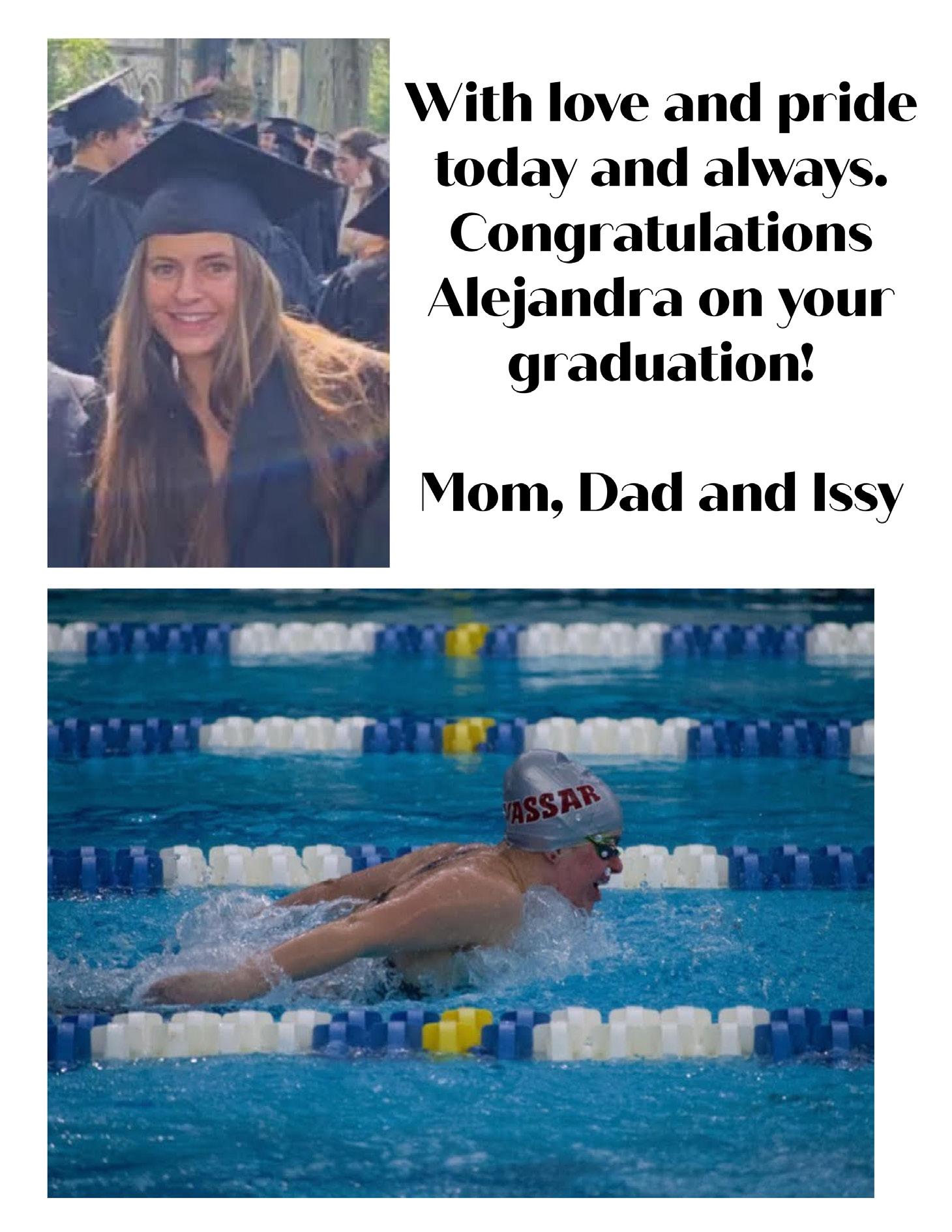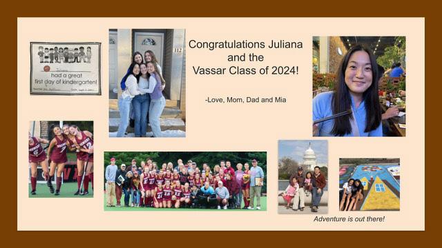 first Presidential Election. And, many of us learned what it is that we are truly passionate about, whether it was through a beloved professor, a favorite class, or personal discovery. The ups and the downs have both undoubtedly made us better—more steadfast in our values, and more sure of our individual personhood. And regardless of how it happened, or what we had to go through, we are GRADUATING COLLEGE. And that is no small feat. I feel so proud of every single member of the Class of 2024, and, dare I say it, I feel proud of myself. I can't wait to see what we accomplish in our sure-to-be bright futures. Lastly, I am proud to join a new family with you all– the Vassar Alumni network. If I know anything about us Vassar kids, we're probably in good hands.