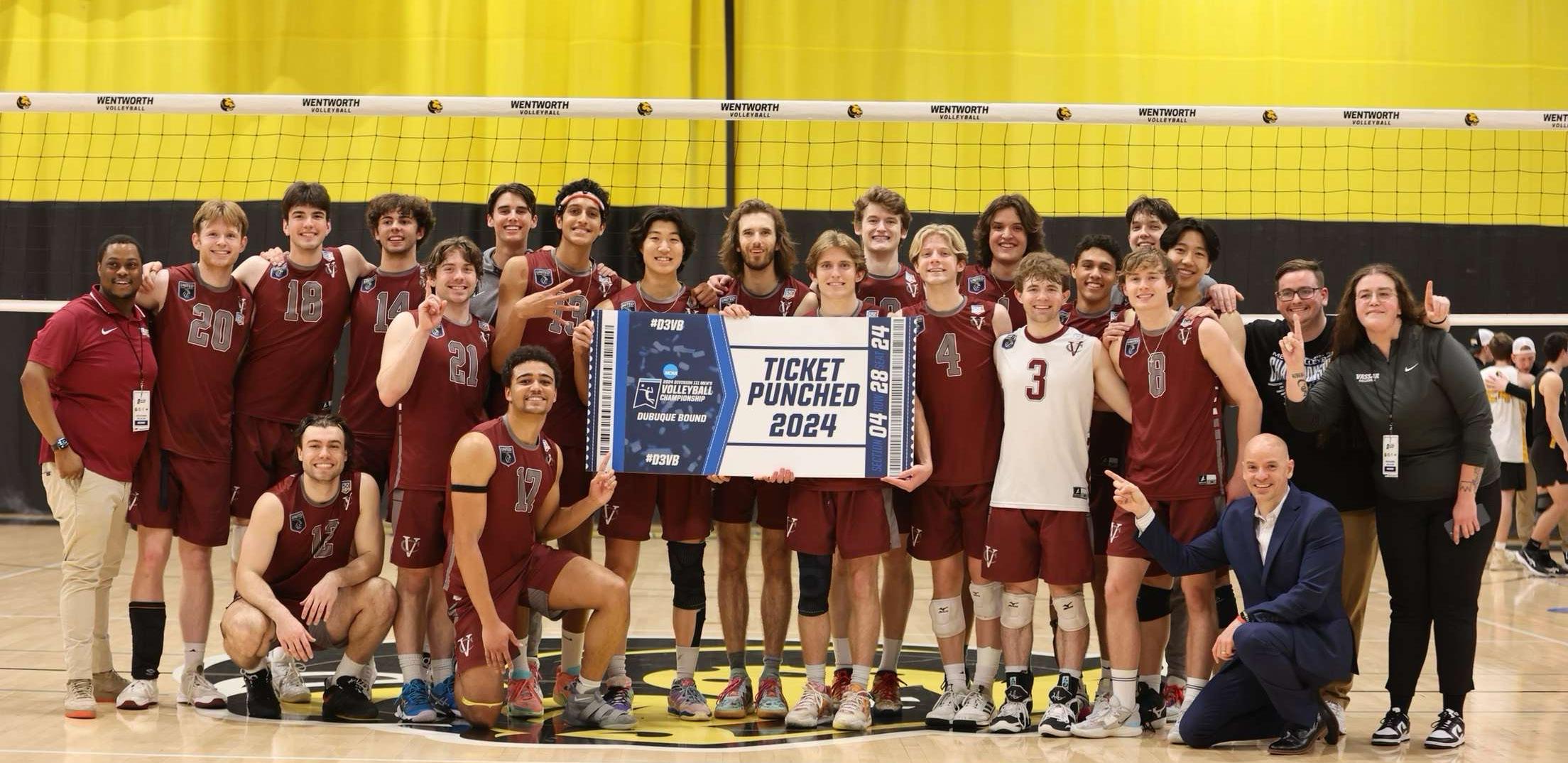 just getting going, and they would face third ranked Wentworth in the next round. Wentworth finished the season 31-2 powered by AVCA Player of the Year, Jacob Labouliere. Vassar was going to need to play their absolute best game, and then some—and they did. Even with their incredible performance, the game’s margin throughout the game was razor thin. Three of the five sets were twopoint margins. Coach Gary was enamored by the match, telling The Miscellany News, “Wentworth may have been the most wild game I've ever been part of … there were just so many moments we hoped and prepared for that came to fruition. Andrew Guaragno's front row play, Payne [Lounsbery]'s serve, [Ramsey]'s whole game, Kim and Erickson's confident and focused leadership, Toby [Clark]'s clutch serving, Billy [Fan]'s whole game-bombing serves, passing dimes, executing on every play. It was everything we could have hoped for, win or lose, and to make the run to Iowa was like another complete season added onto the end of things.” Coach Gary’s comments make it clear that Vassar’s victory over Wentworth necessitated every member of the team. Freshman Armaan Desai came into the high-pressure affair and absolutely rose to the occasion, hitting .421 on nine kills, Sophomore Casey McMenamin stepped in on numerous occasions as a serving substitute— what the announcers called “the hardest job in the game of volleyball” – and executed his job at a high level, powering a late-set three point run. Finally, junior Toby Clark stepped up in the biggest way with a clutch serve to win the match in the fifth set, sending Vassar to the final four for the second year in a row. Vassar now had the opportunity to win their first ever set in the national semi-finals, but more importantly, against the team that robbed them of the UVC title, New York University.