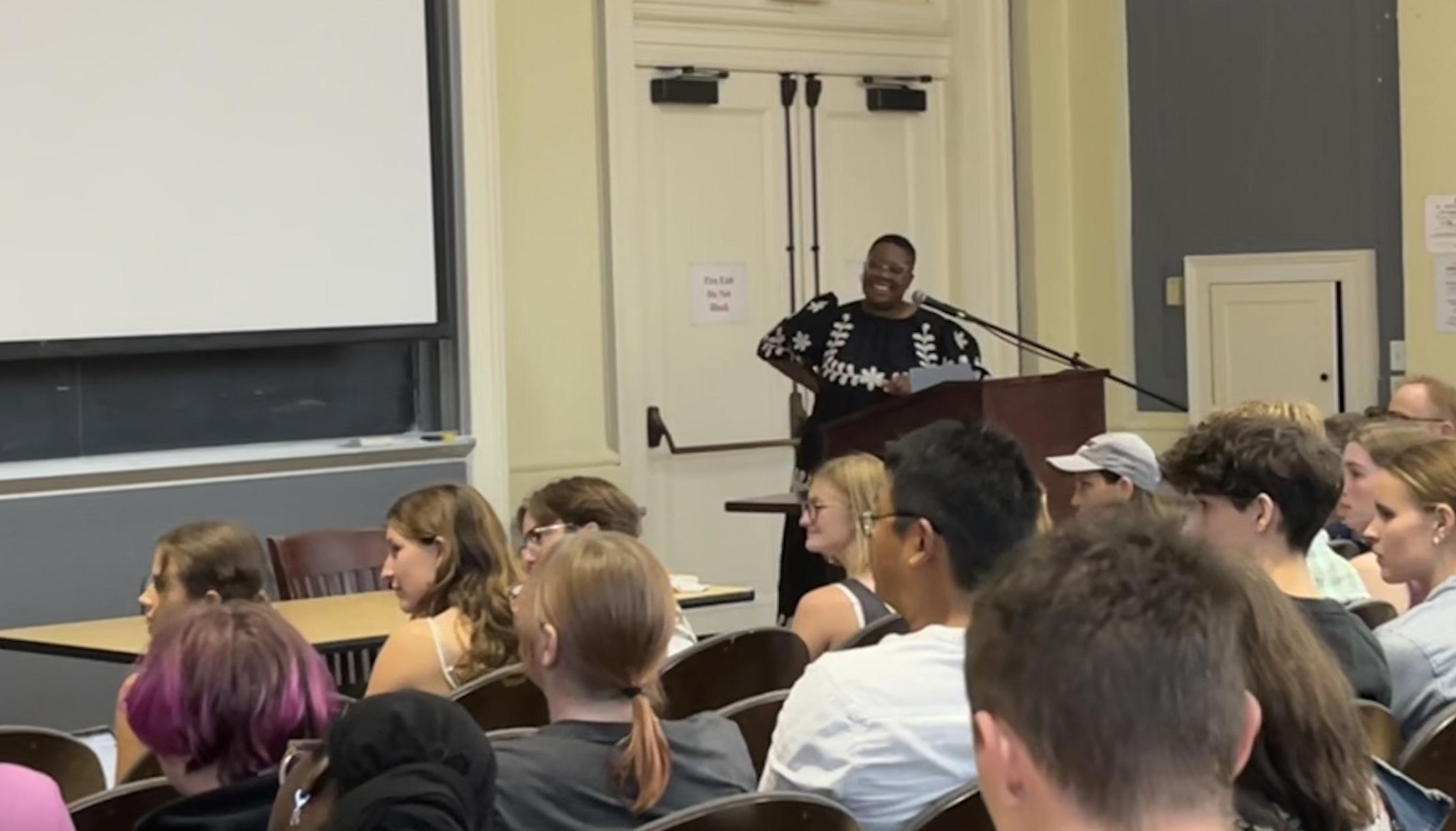 The event’s chief organizer, Professor Jeffrey Seidman of the Philosophy and Environmental Studies Departments, spoke first to the bustling audience. He outlined the breadth of Gunn-Wright’s accomplishments, including her work as a chief policy architect for the United States’ Green New Deal (GND). Seidman discussed GunnWright’s contributions and their impact, not only on national-level policies like the misleadingly named Inflation Reduction Act passed by Congress in 2022, which included investments in areas such as clean energy and emissions reduction to fight climate change, but also at the state and lo-