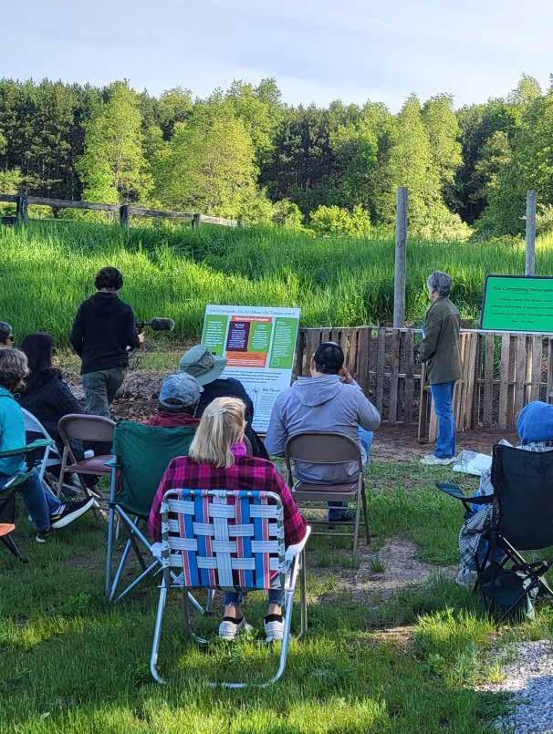 A more formalized system of composting has begun at the Leelanau County Poor Farm. On May 29, 2024, thirty-two participants attended this workshop spearheaded by Kama Ross, County Commissioner for District 5, Kate Thornhill of Leo Creek Preserve in Suttons Bay, and Jane Eccelstone, volunteer for Row•by•Row (formerly Buckets of Rain) and the Poor Farm Perennials Garden.
