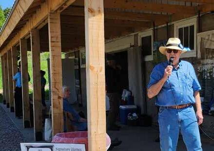 Former County Commissioner Kama Ross, Master Gardener Jane Ecclestone, and Leo Creek Preserve Board member Kate Thornhill are completing the composting bins at the Poor Farm Barn site (left).