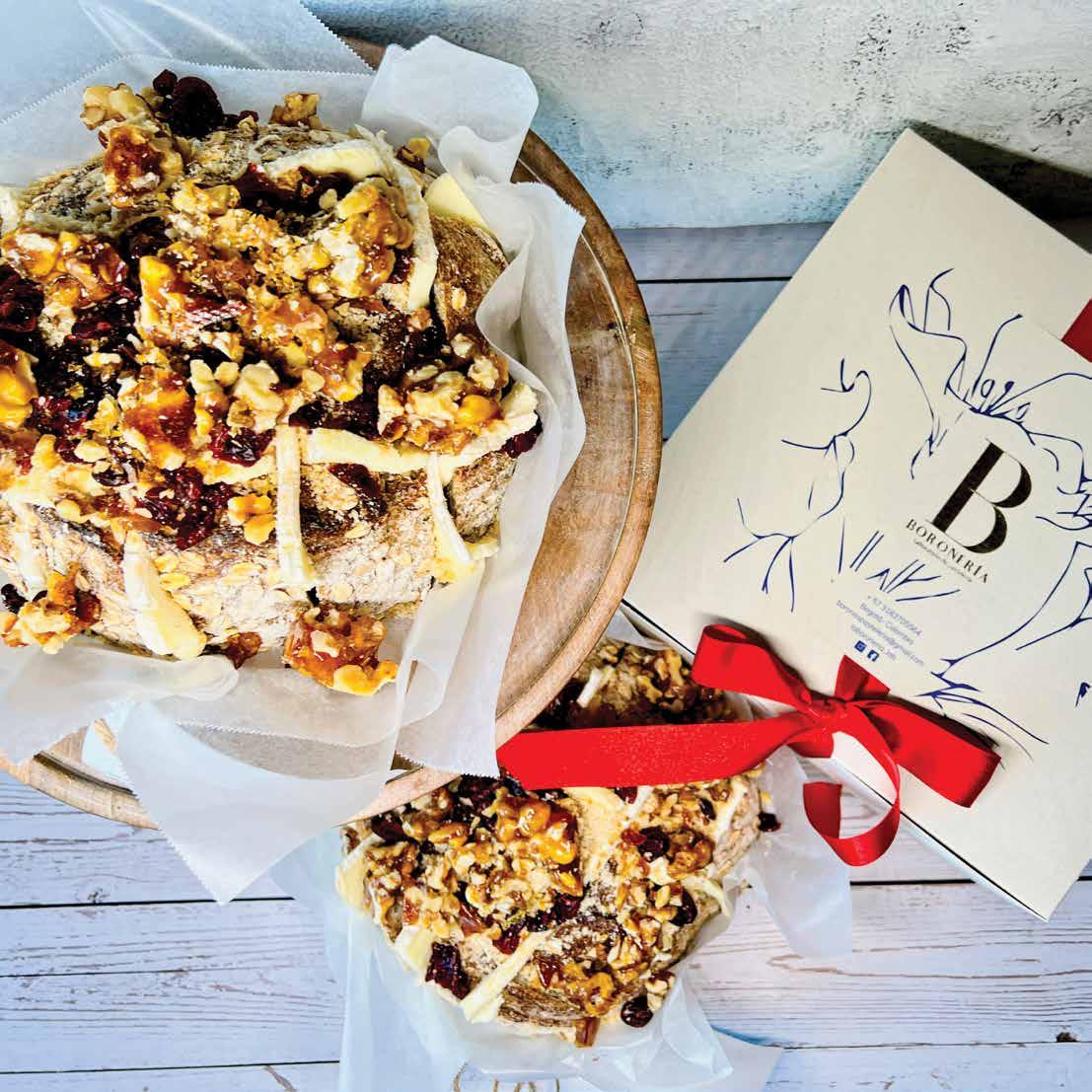 Nuestro tradicional pan de masa madre relleno con g de queso brie, crumble, arándanos y nueces caramelizadas. Listo para calentar y servir al centro de la mesa como pasabocas o entrada. Porciones: 8