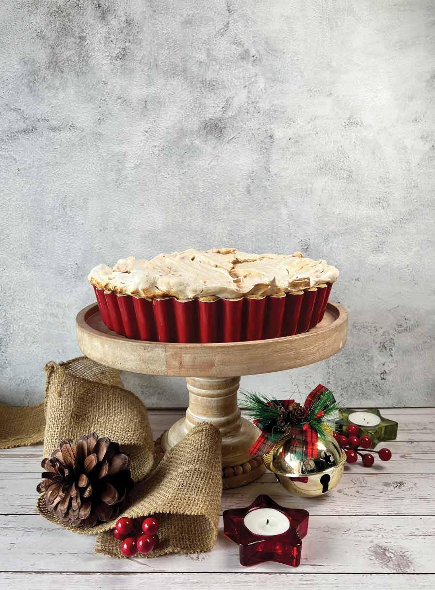 Nuestro lanzamiento para este año, pie con base de avena libre de gluten relleno de arándanos o manzana canela con merengue horneado. Si tienes un molde puedes traerlo o lo recibes en molde de aluminio.