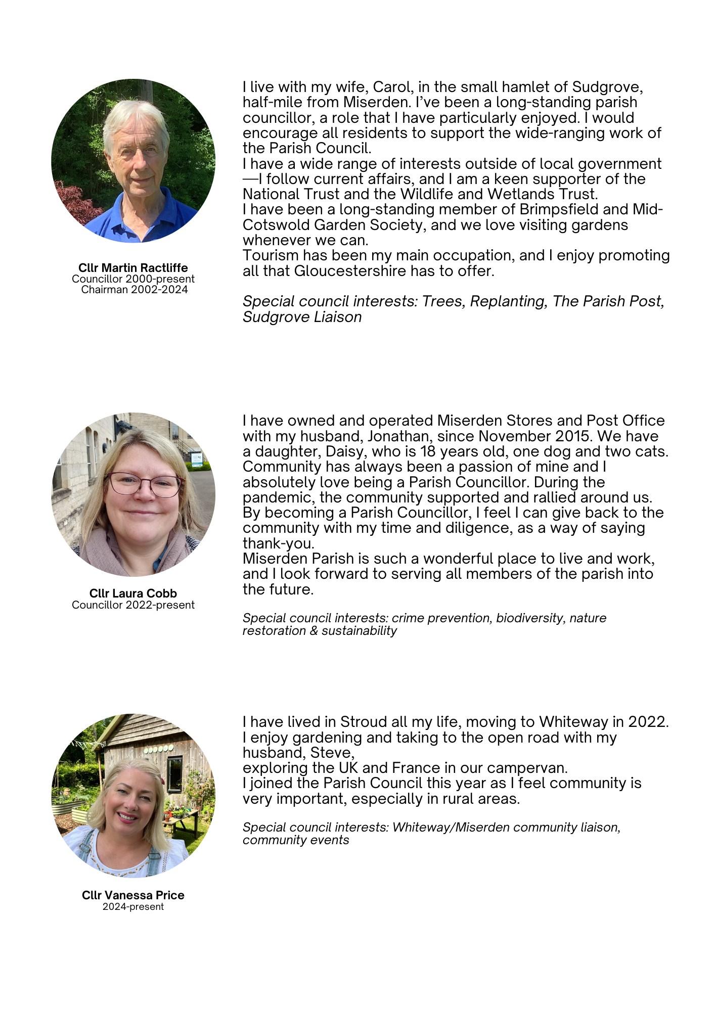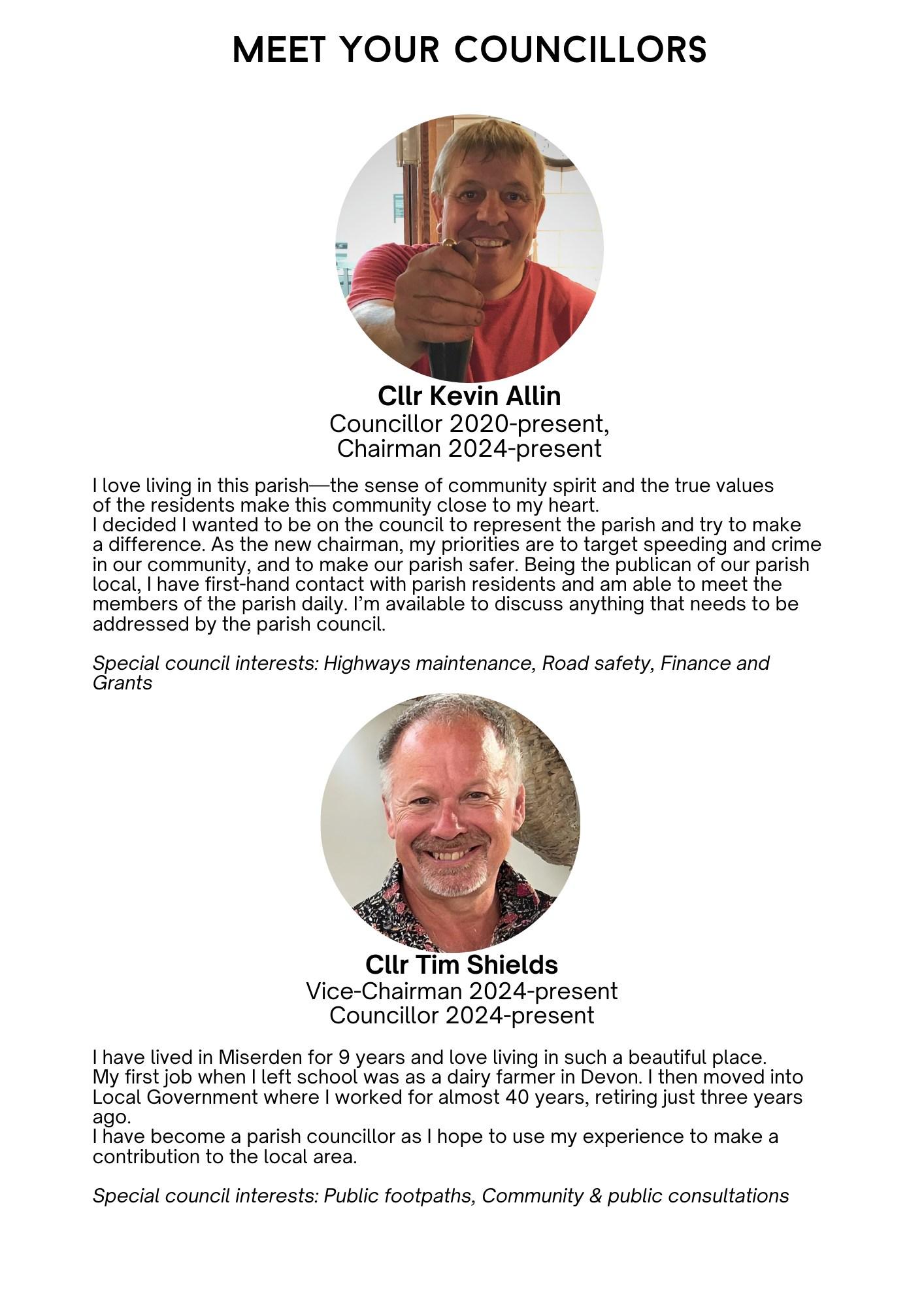 Cllr Tim Shields – Vice Chairman tshields@miserdenparishcouncil.gov.uk