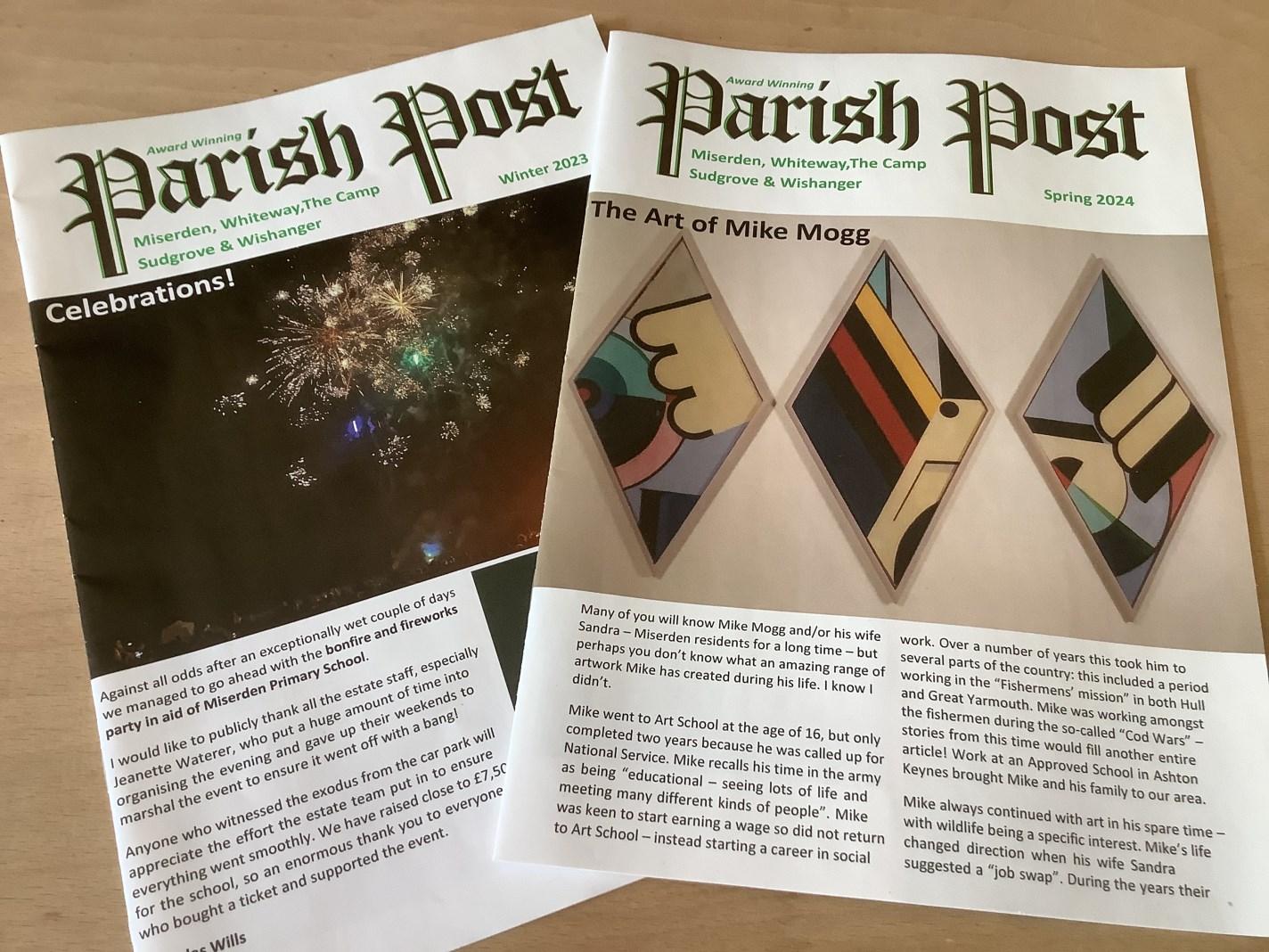 Published quarterly, The Parish Post claimed runner-up position in a national contest for newsletter of the year, and since then has gone from strength to strength, and is delivered to every household in the Parish of Miserden.