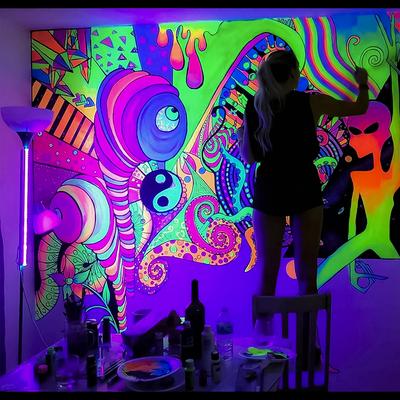 Durante la década de 1960 se introdujeron en e mercado los colores acrílicos fluorescentes iridiscentes,loquepermitelacreacióndepinturasqu brillanbajoluzultravioletaoluznegra Estoespopula enelarteurbano.