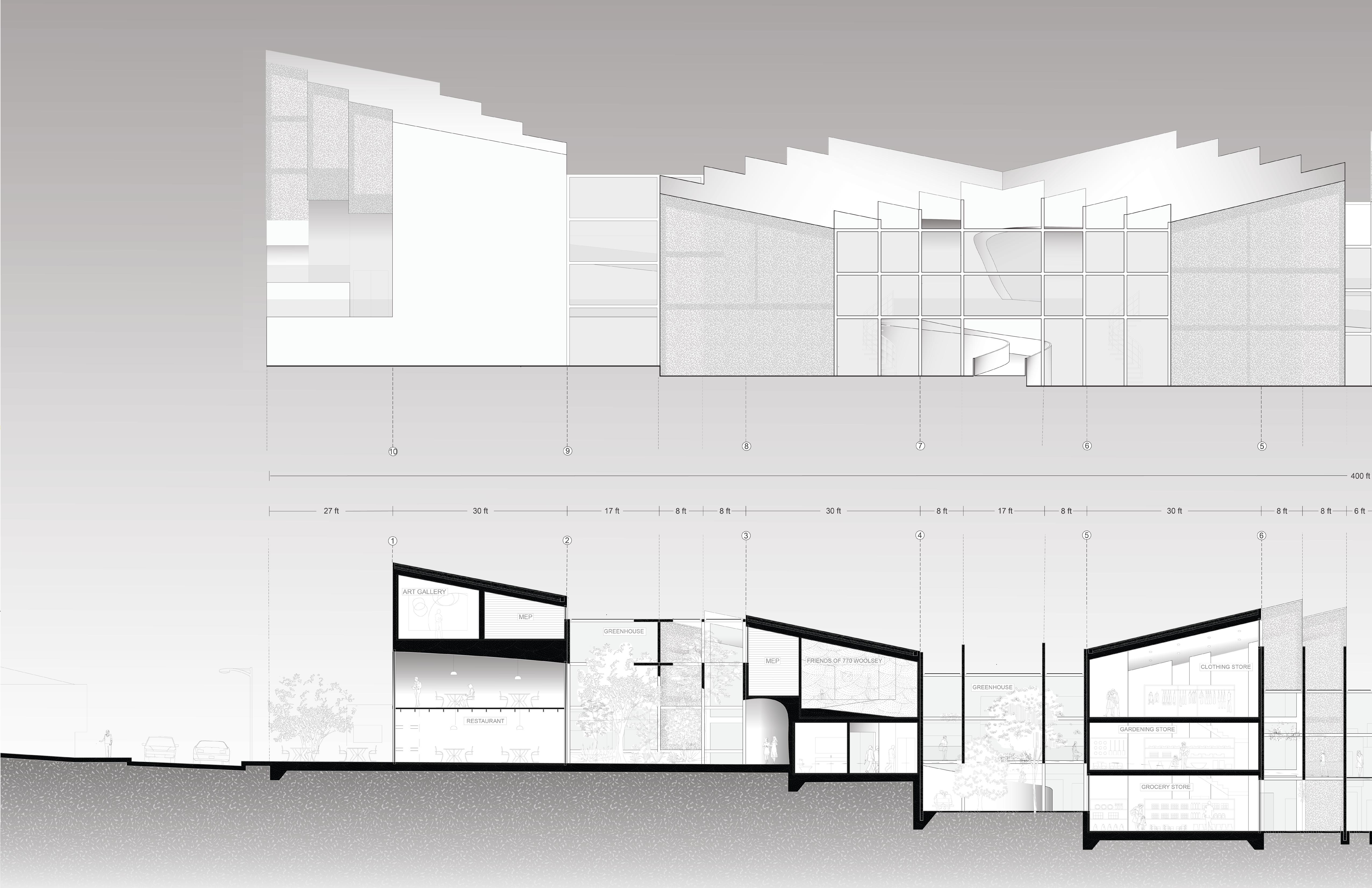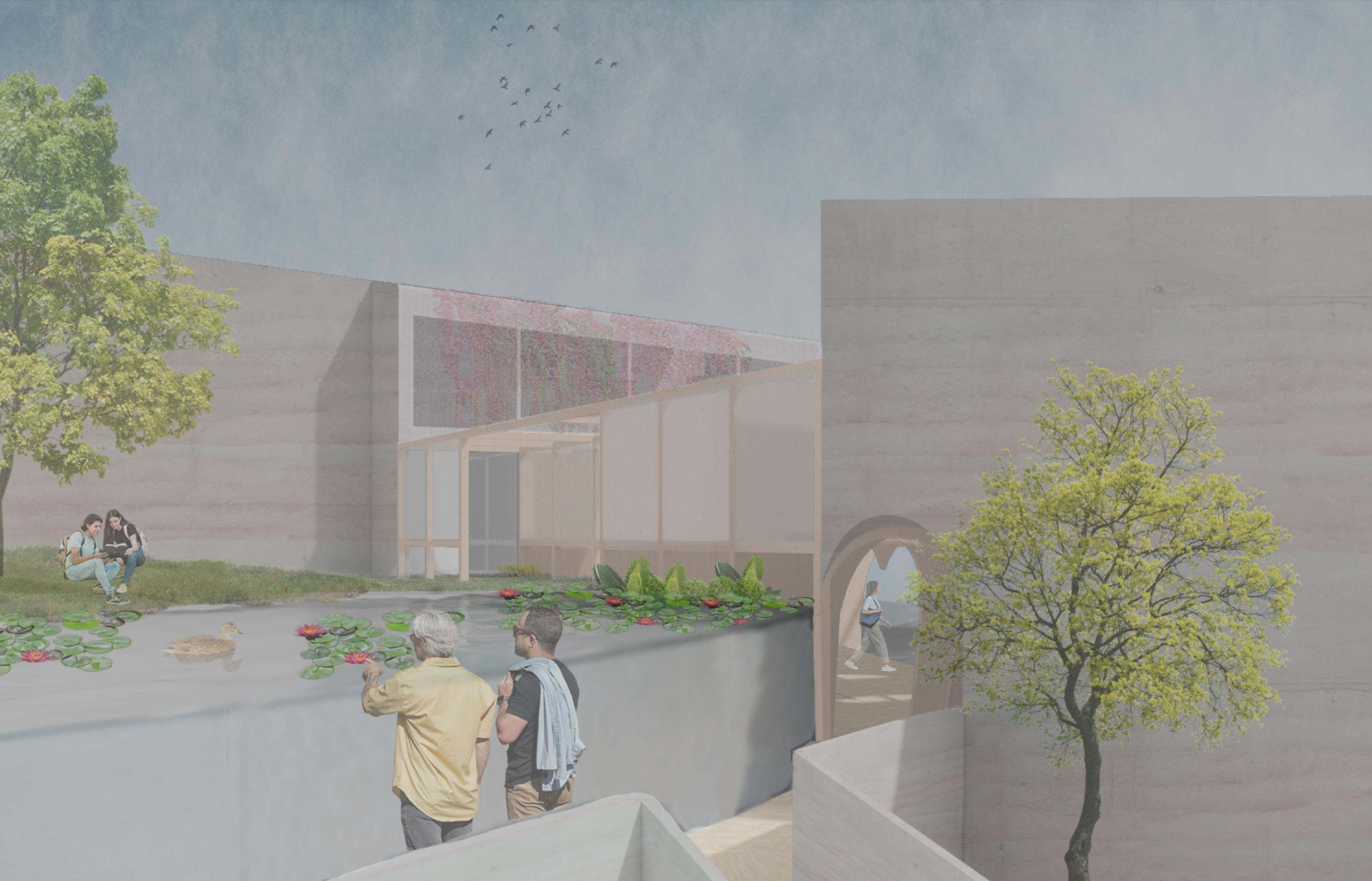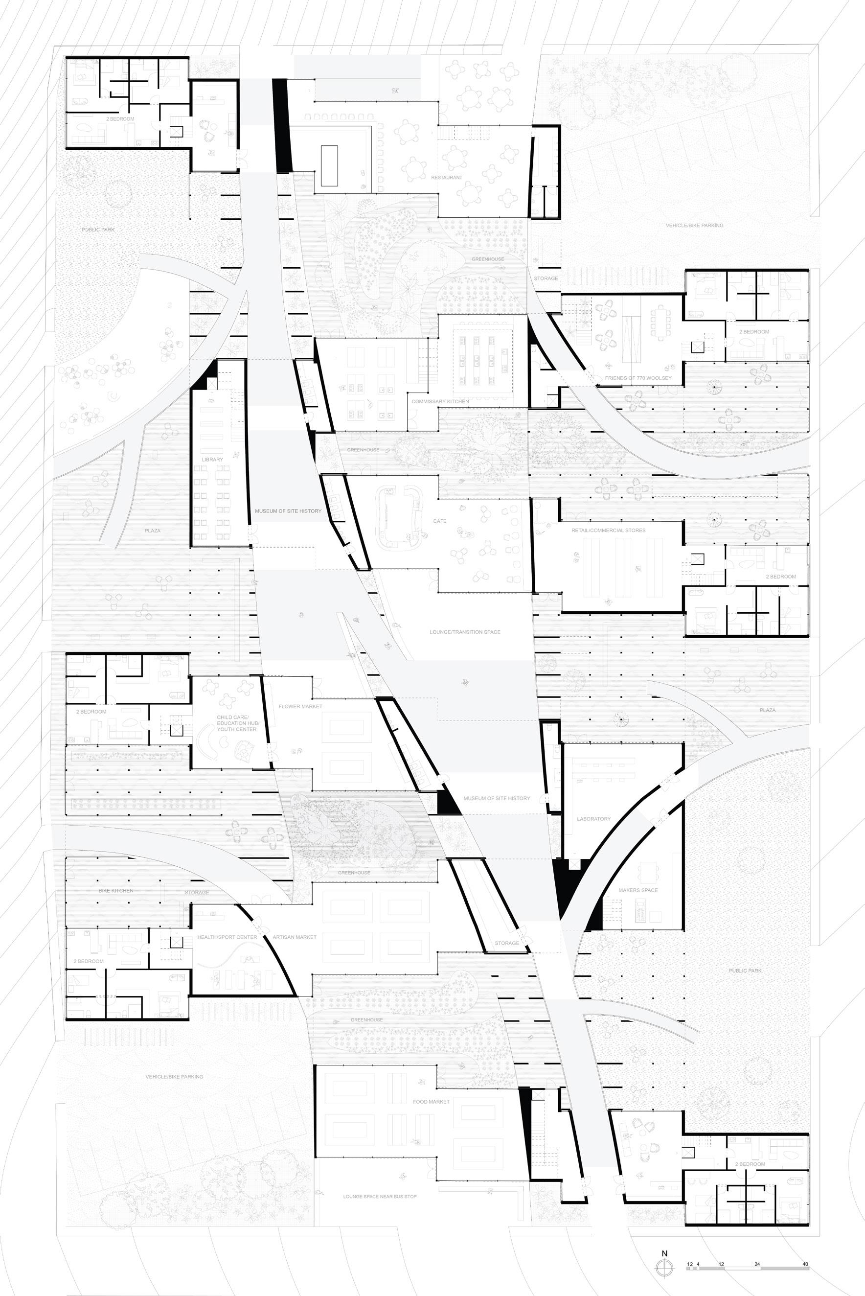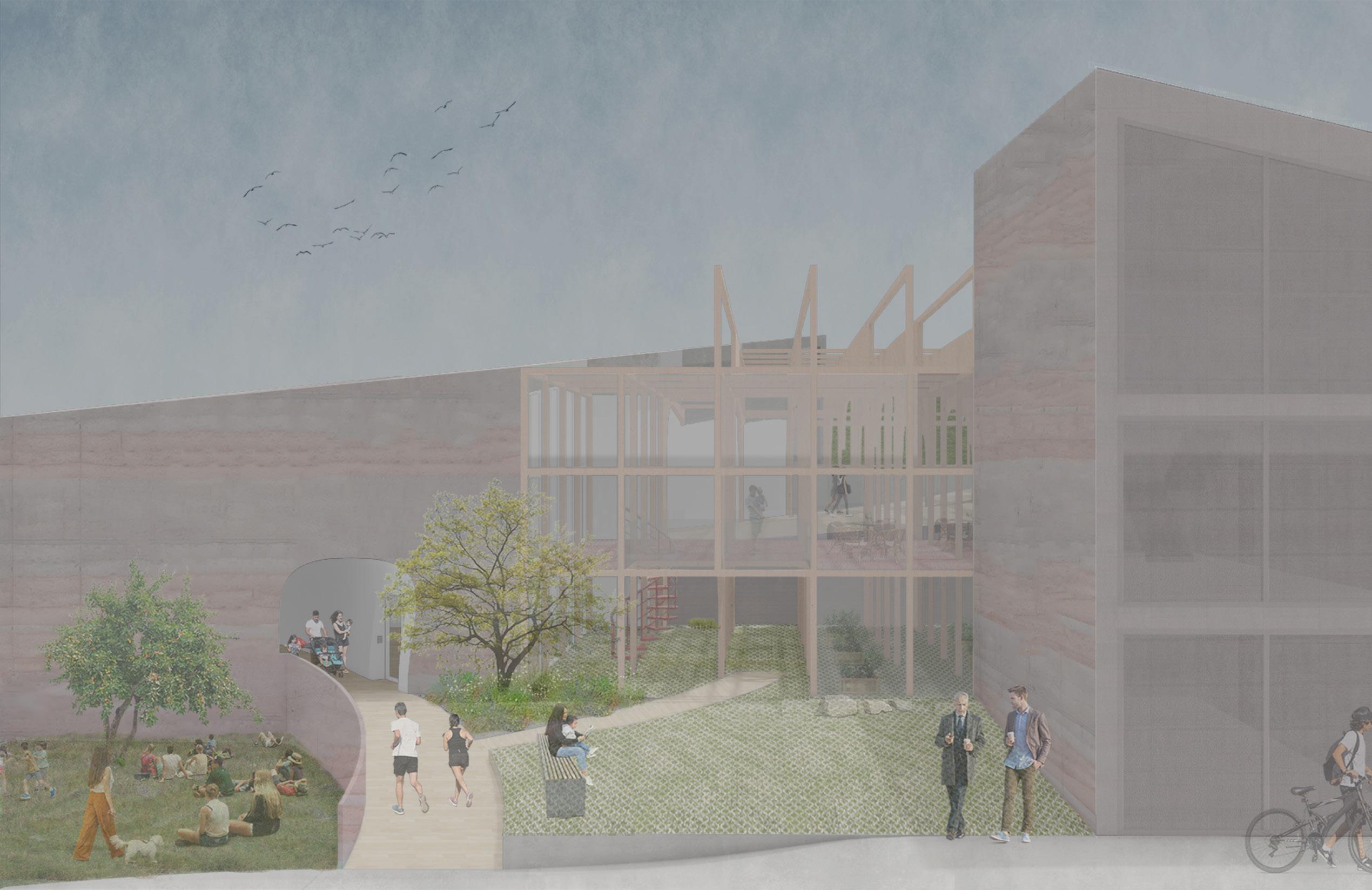 Located in San Francisco’s Portola neighborhood, this agricultural community center seeks to heal the relationship between progress and history. Unique entrances invite and guide visitors through choreographed paths, where moments of inversion stitch together agricultural processes with programmatic community needs. The four buildings exist as separate characters yet form an interconnected network. Opposites—private and public, collective and individual, indoors and outdoors, dark and light, rectilinear and curvilinear, old and new—are in constant dialogue, embracing that one would not exist without the other. It is a careful and beautiful dance of inversions.