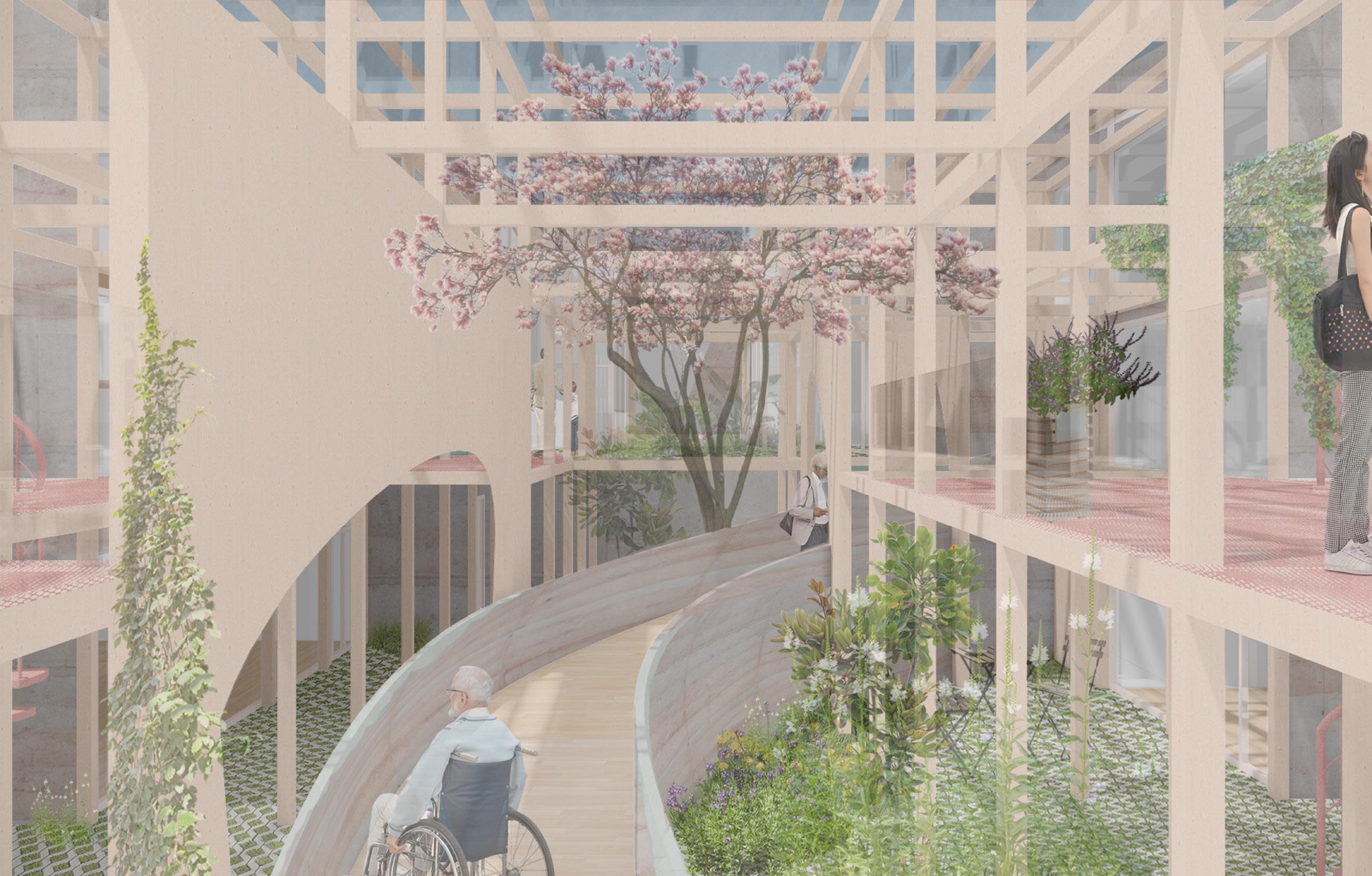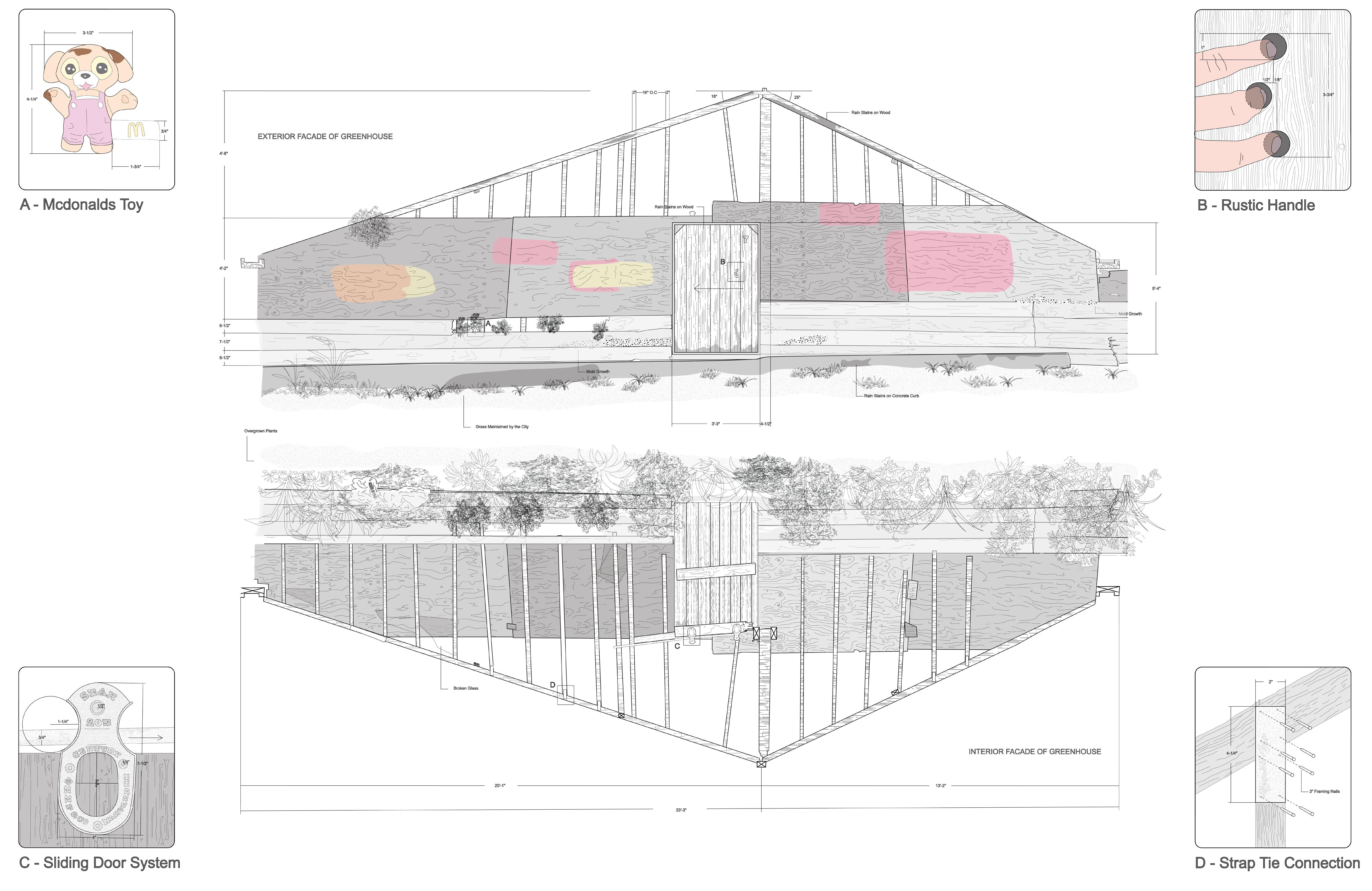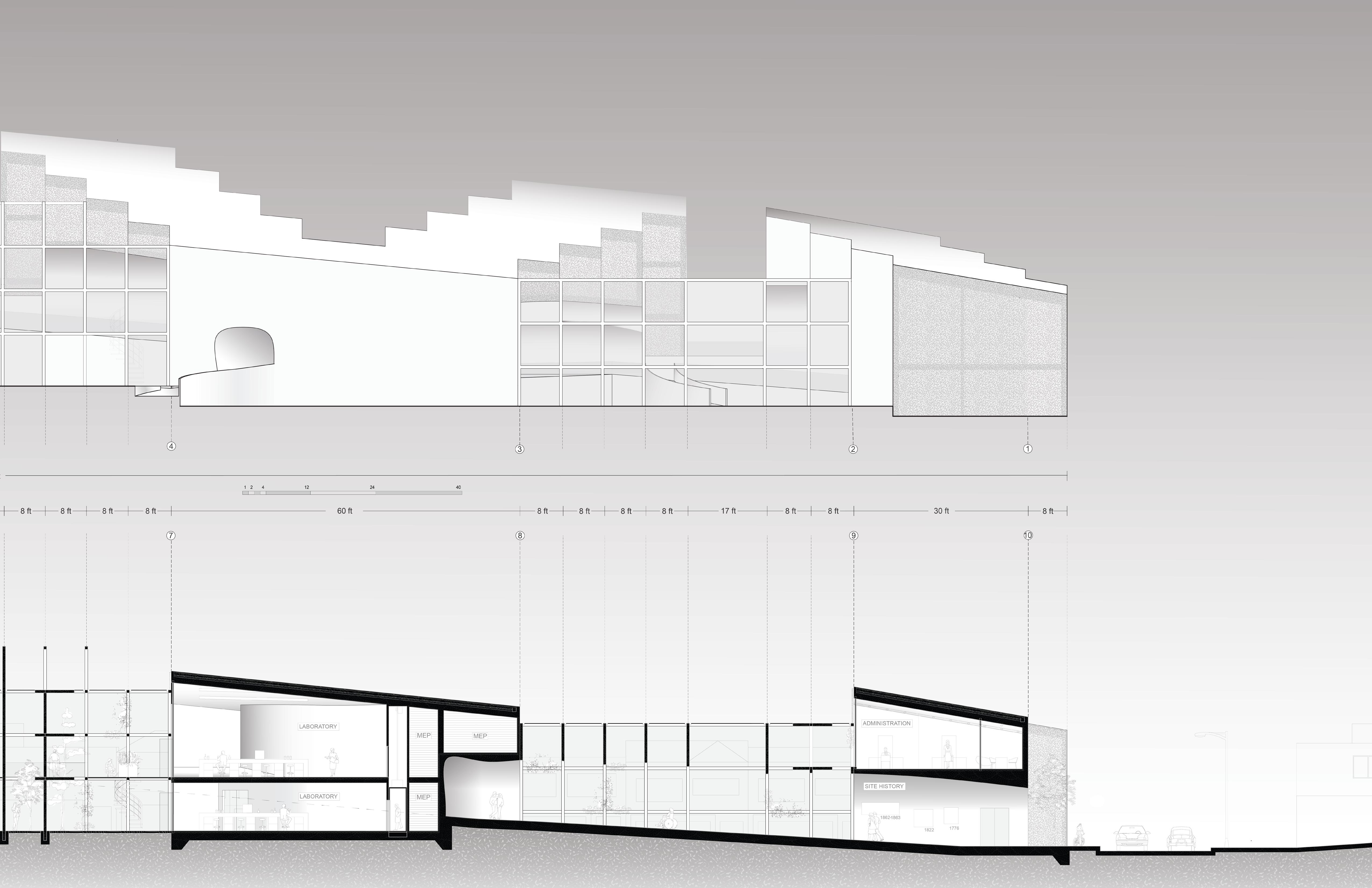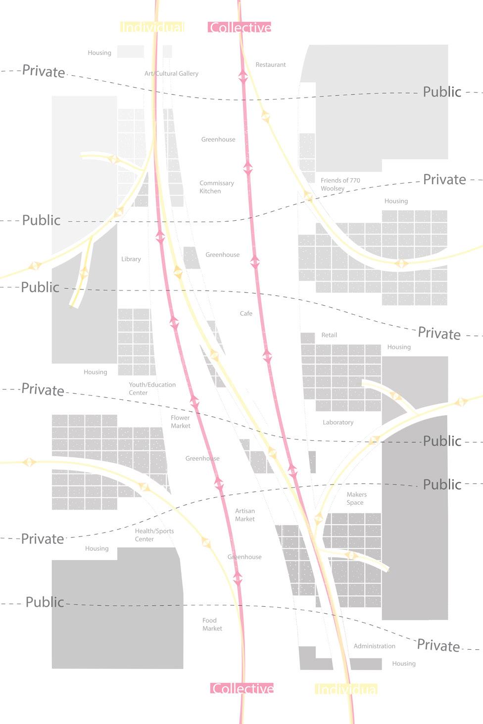 Located in San Francisco’s Portola neighborhood, this agricultural community center seeks to heal the relationship between progress and history. Unique entrances invite and guide visitors through choreographed paths, where moments of inversion stitch together agricultural processes with programmatic community needs. The four buildings exist as separate characters yet form an interconnected network. Opposites—private and public, collective and individual, indoors and outdoors, dark and light, rectilinear and curvilinear, old and new—are in constant dialogue, embracing that one would not exist without the other. It is a careful and beautiful dance of inversions.