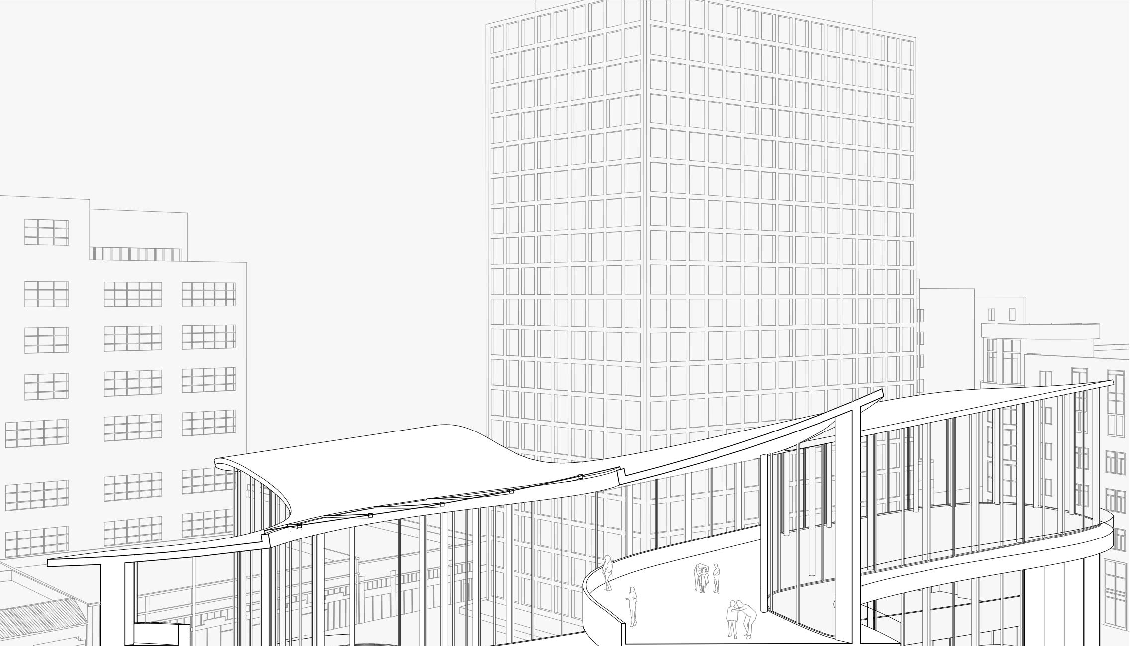 I created a series of renderings for the board of investors, enhancing the existing building design by modeling additional elements in SketchUp. These included the stair screen, landscaping, and materiality details.
