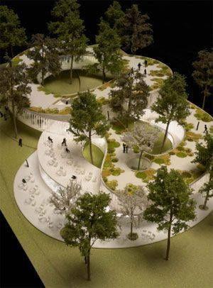 Se tomará en cuenta formas irregulares como las raíces y la fluidez de estás que se relacionan con el comportamiento "juguetón" del guardián en los relatos, obteniendo desniveles de terrenos dinámicos que se adecuen en las necesidades de los visitantes.