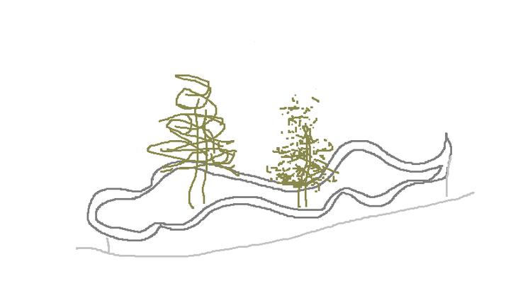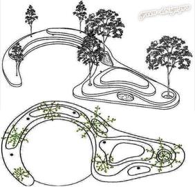 Se tomará en cuenta formas irregulares como las raíces y la fluidez de estás que se relacionan con el comportamiento "juguetón" del guardián en los relatos, obteniendo desniveles de terrenos dinámicos que se adecuen en las necesidades de los visitantes
