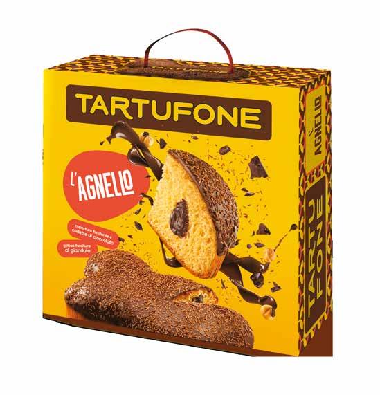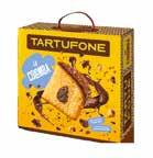 The real Tartufone taste. A soft and naturally leavened Colomba enriched with gianduia cream, covered with dark chocolate and crunchy tru e grains.