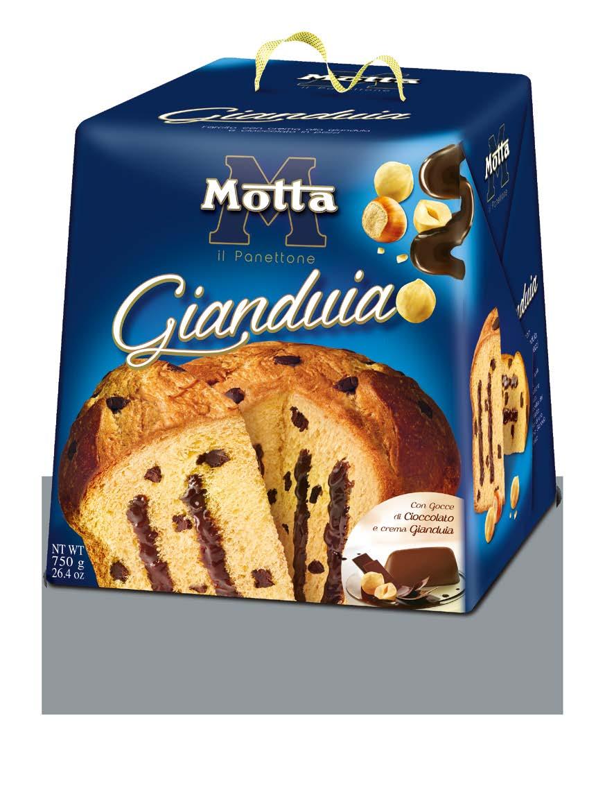 The legendary Motta Panettone becomes luscious, enriched with chocolate drops and gianduia cream.