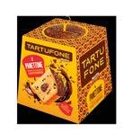 The new Tartufone Panettone enriched with Santo Domingo cocoa cream and chocolate chips, covered with dark chocolate and cocoa beans.