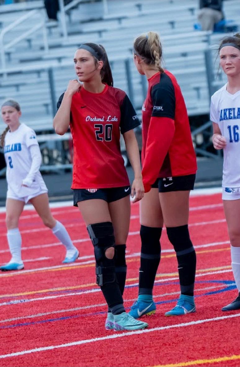 Even despite having five players out with season-ending injuries even before the opening kickoff in 2023, Marian still cruised along last season winning CHSL-Central Division CHSL-Bishop Tournament and Division 2 district championships along the way. The Mustangs posted 13 clean sheets and only conceded eight goals all season 0(.42 team G.A.A.) while scoring 53 goals. Then the unexpected happened. The Mustangs saw unranked Grosse Pointe North storm back in a regional semifinal and claimed a 3-2 shootout victory enroute to a Division 2 state championship run Marian went home So far this season through April 16, Marian is off to a 3-0-2 start, scored six goals while not allowing a single goal in the first five games There is a bevy of talent on this roster, and healthy, and this team will simply be difficult to score upon this season Seniors Olivia Zahnow (CB), Agatha Valka (F), Madeline Stenger (F), Danielle Mertz (G) and Katelynn Freese (D), juniors Isabella Musachio (F), Nadia Valka (CB) and Abigail Walton (D), and sophomores Clair Dauer (CM), Lily Robinson (CB) and Bella Sheens (CM) all started games last season Dauer (All-State Second Team), Zanhow (All-State Third Team), Valka (All-State Honorable Mention), Musachio Valka (All-State Honorable Mention), Mertz Valka (All-State Honorable Mention) and Robinson Valka (AllState Honorable Mention) all received various All-State awards from the MIHSSCA Adri Kattoo (All-State First Team) graduated. Several others players also earned All-District or All-CHSL honors as well. This team is very deep with 17 returnees and two freshmen, Nia Bordogna (M) and Francesca Kulpa (D), are either starting or some of the first players off the bench.