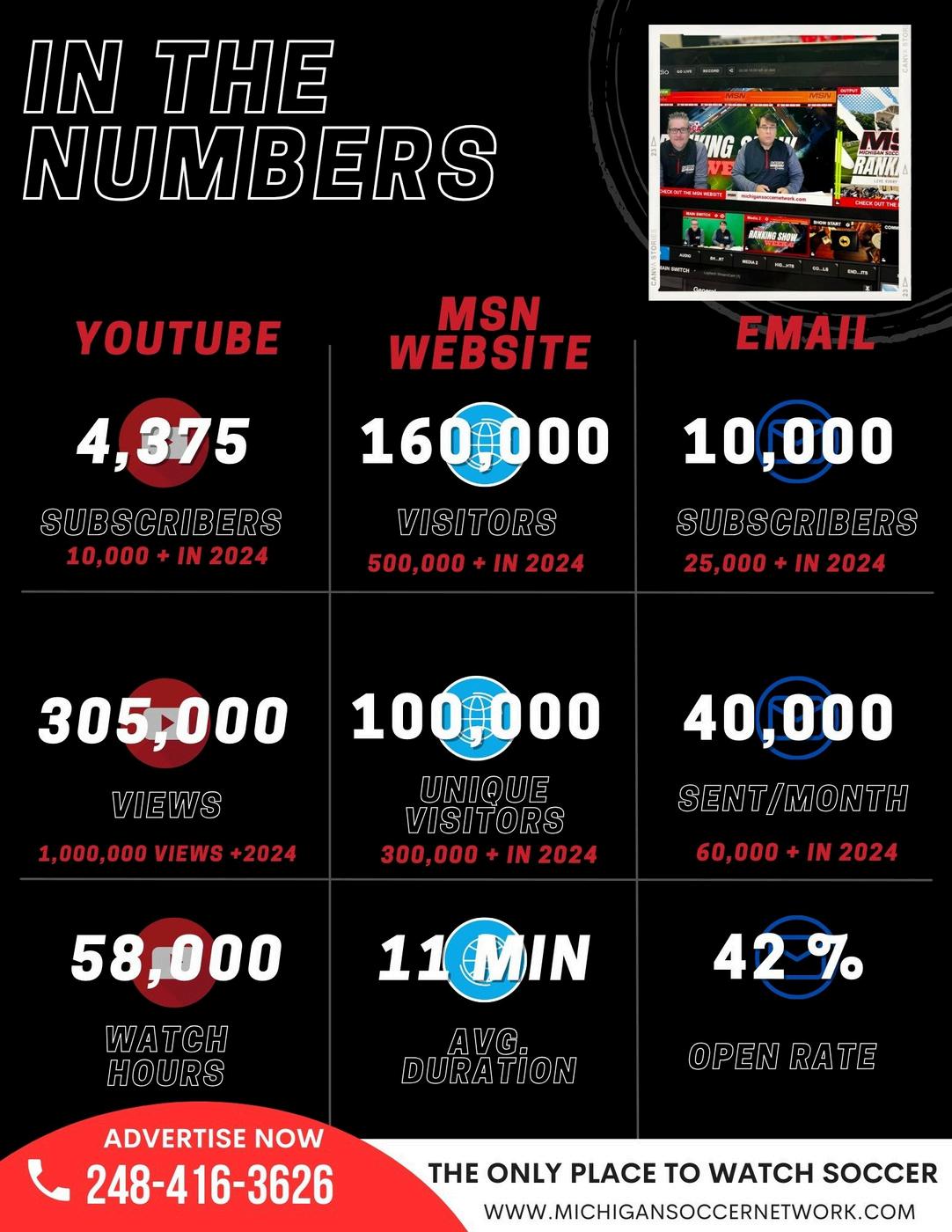 Beginning in the spring of 2024, the Michigan Soccer Network will begin to conduct pretournament shows and previews, 28 game-day broadcasts, and postgame shows with player and coaches interviews as well as game and tournament recaps for its State Cup tournaments