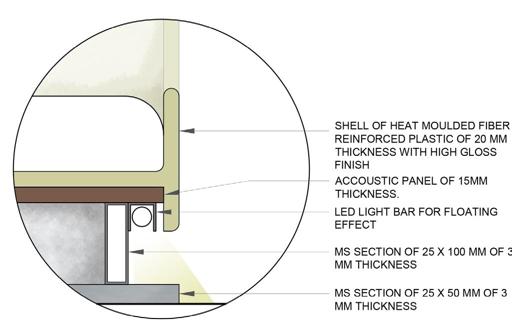 Suspended bulkhead that holds the FIDS & counter frame and intermediate supports with metal jali main