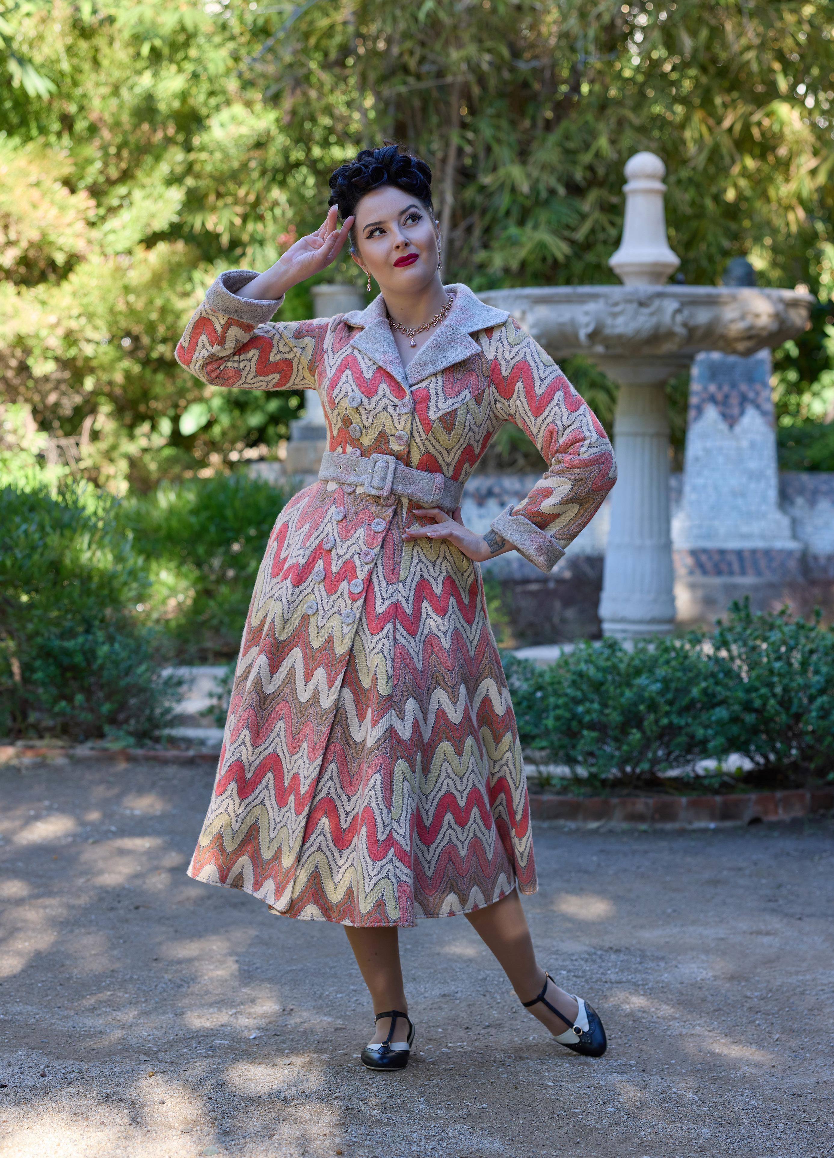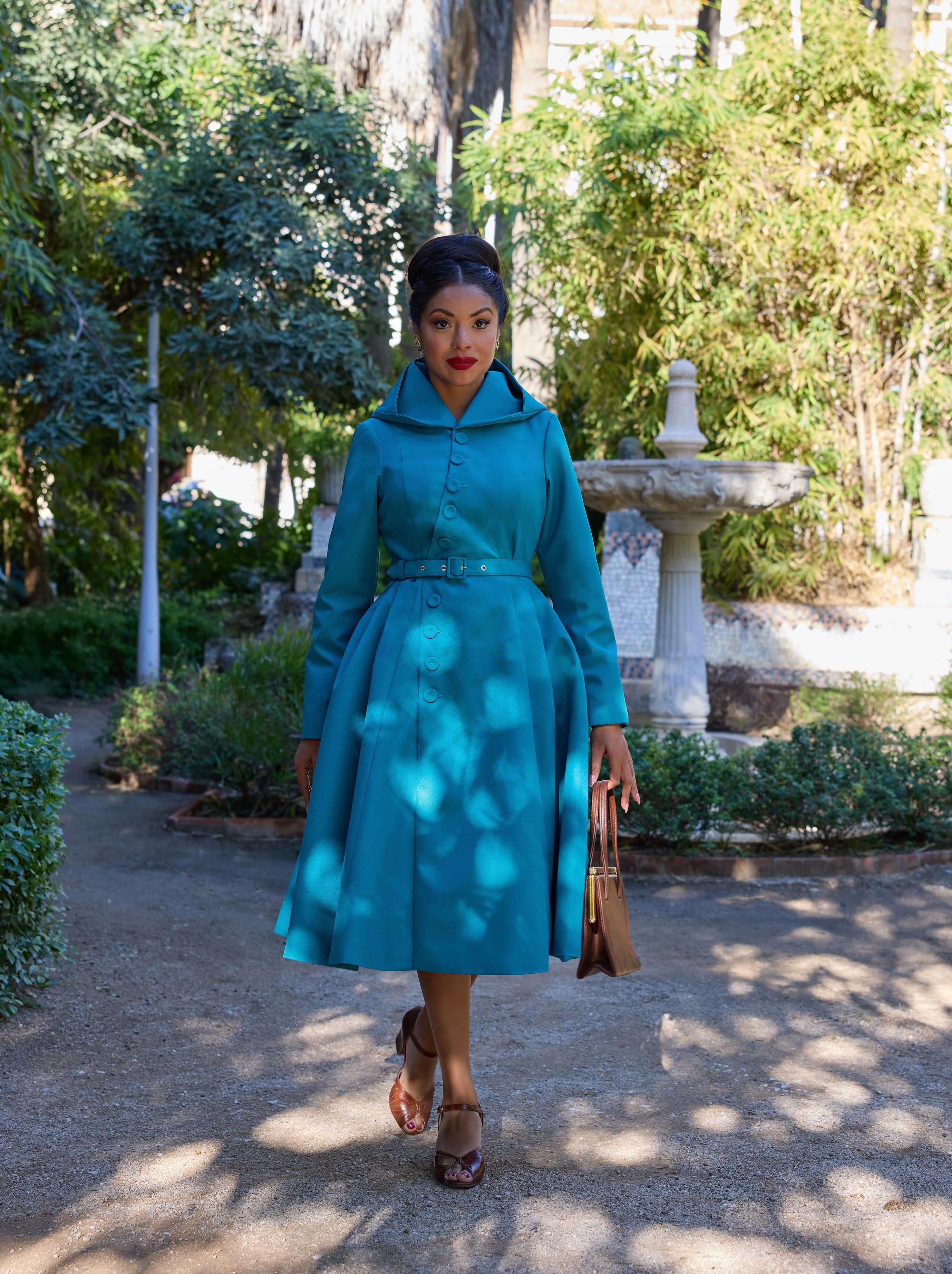 Water-repellent swing coat with a clever foldaway hood, blending practical comfort with the polished, retro refinement of Miss Candyfloss.