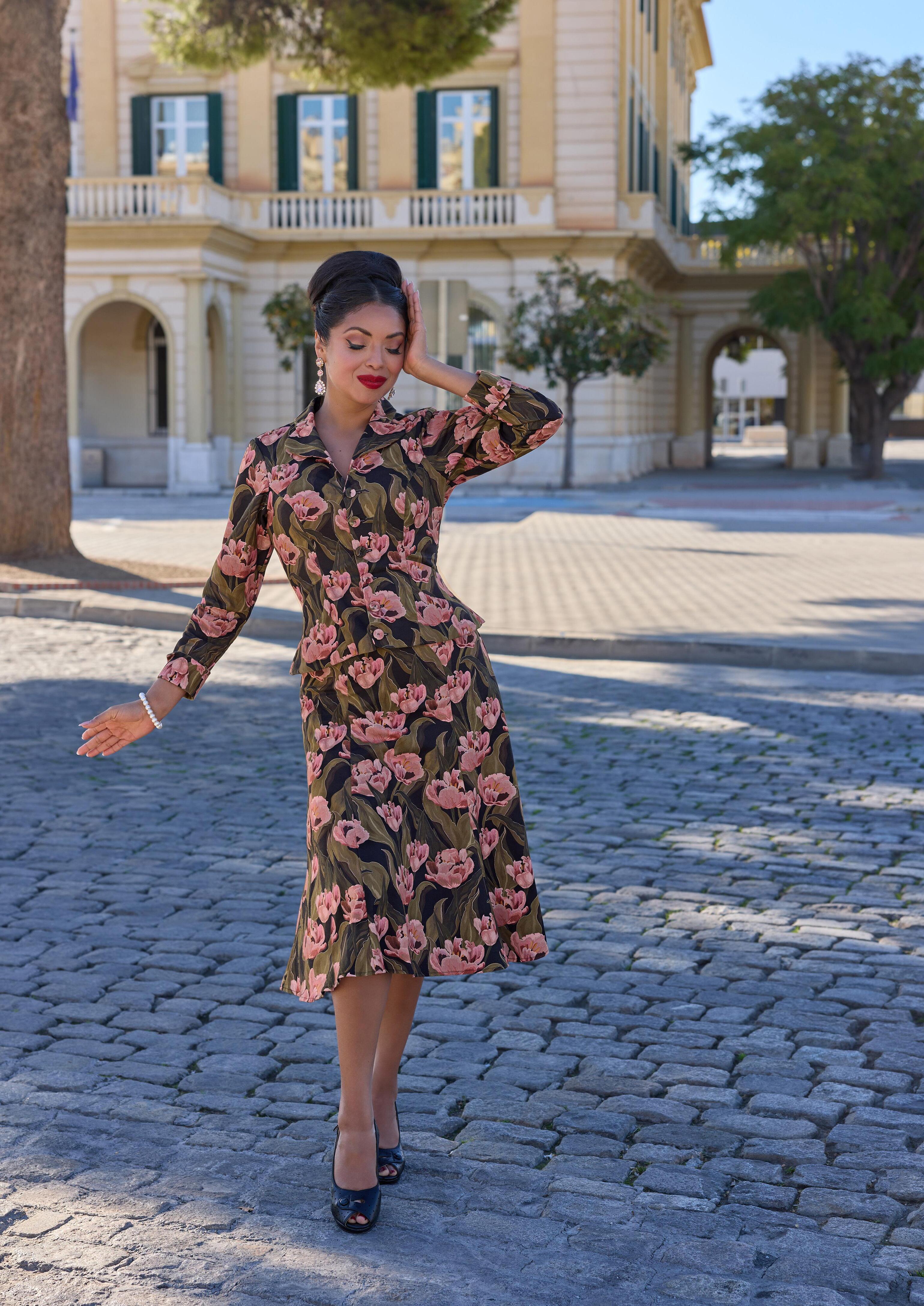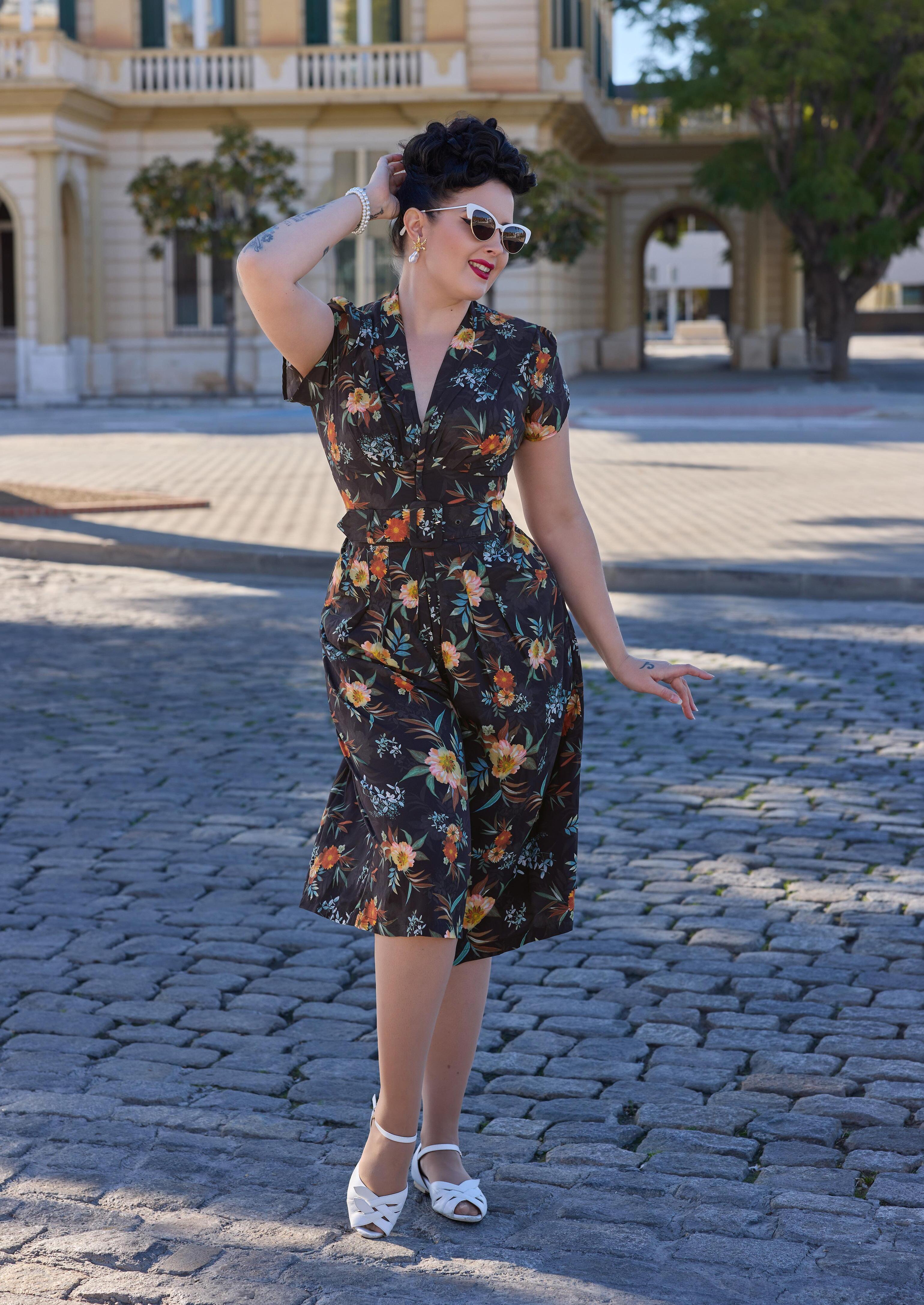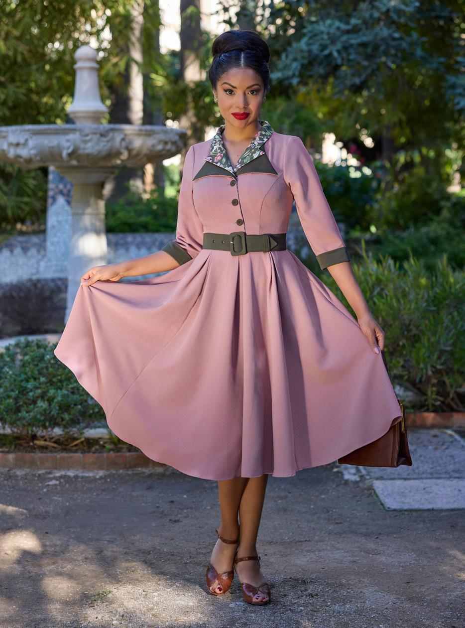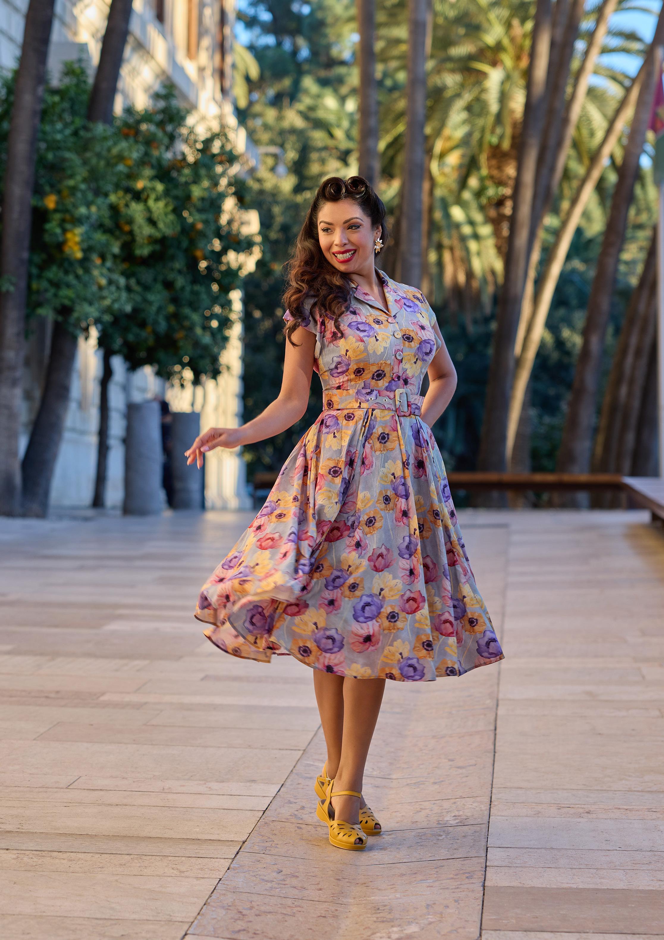 A 1940s-inspired shirtdress with a classic button-down front and handy pockets, radiating vintage elegance and Miss Candyfloss charm.