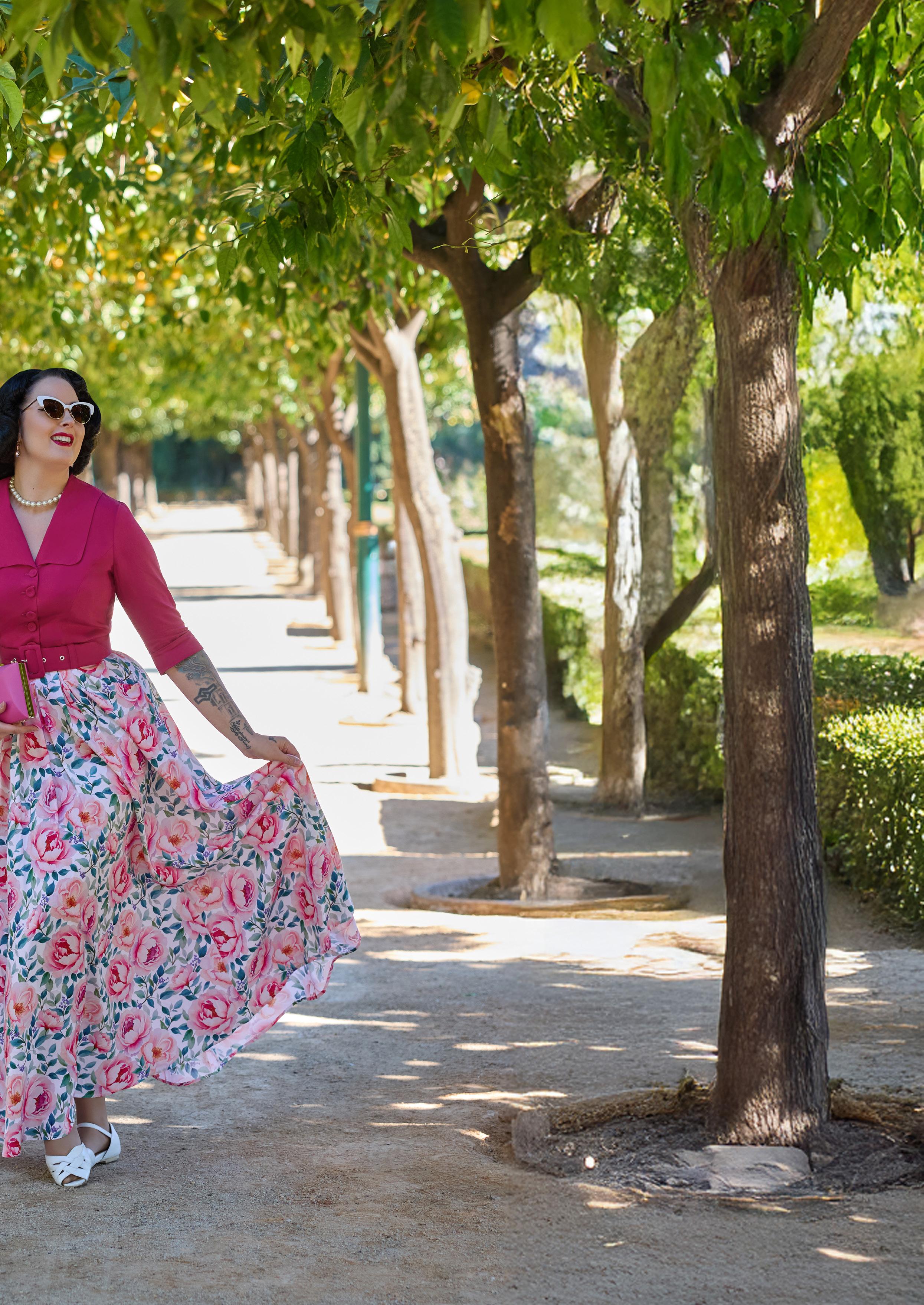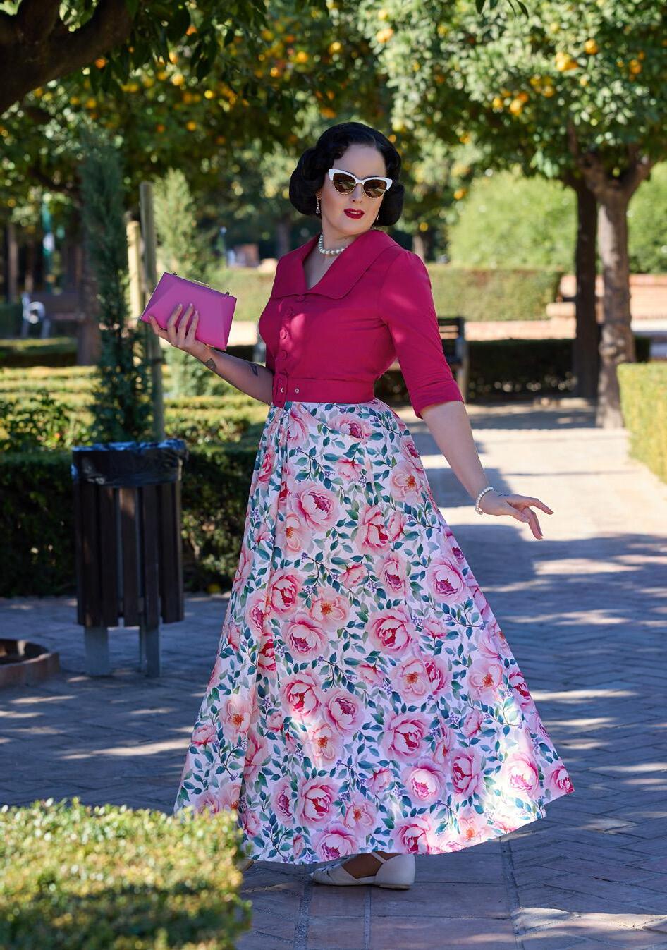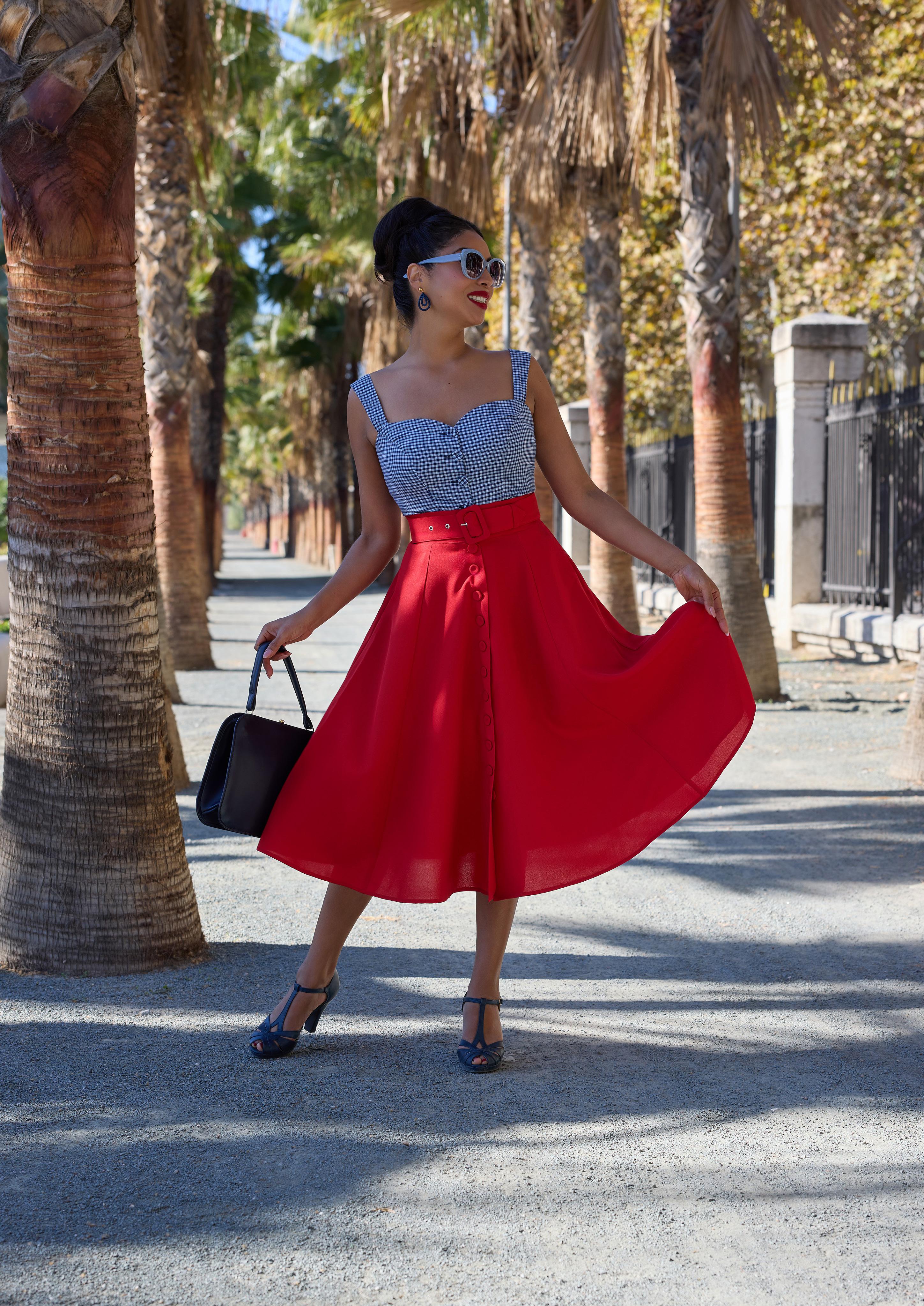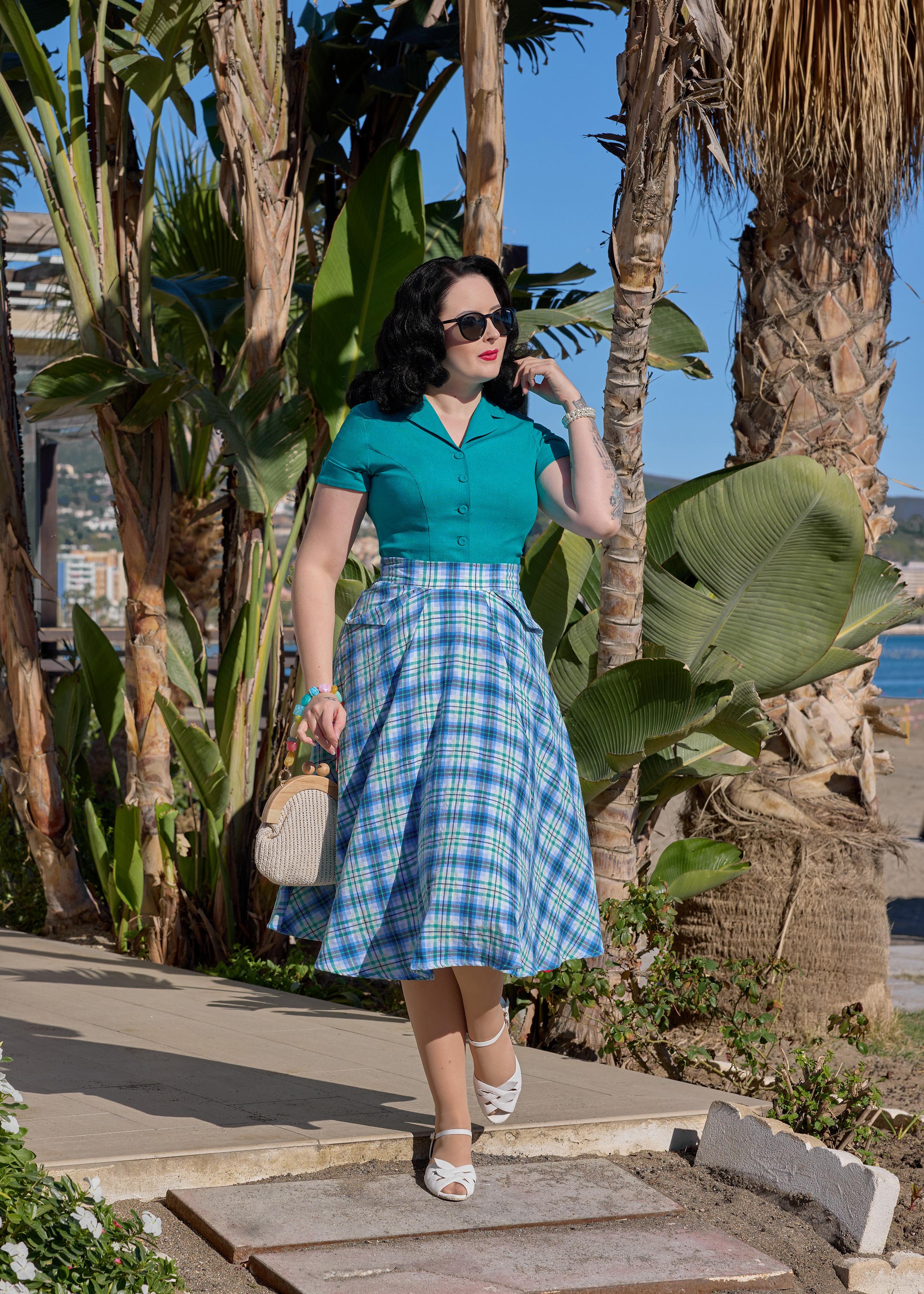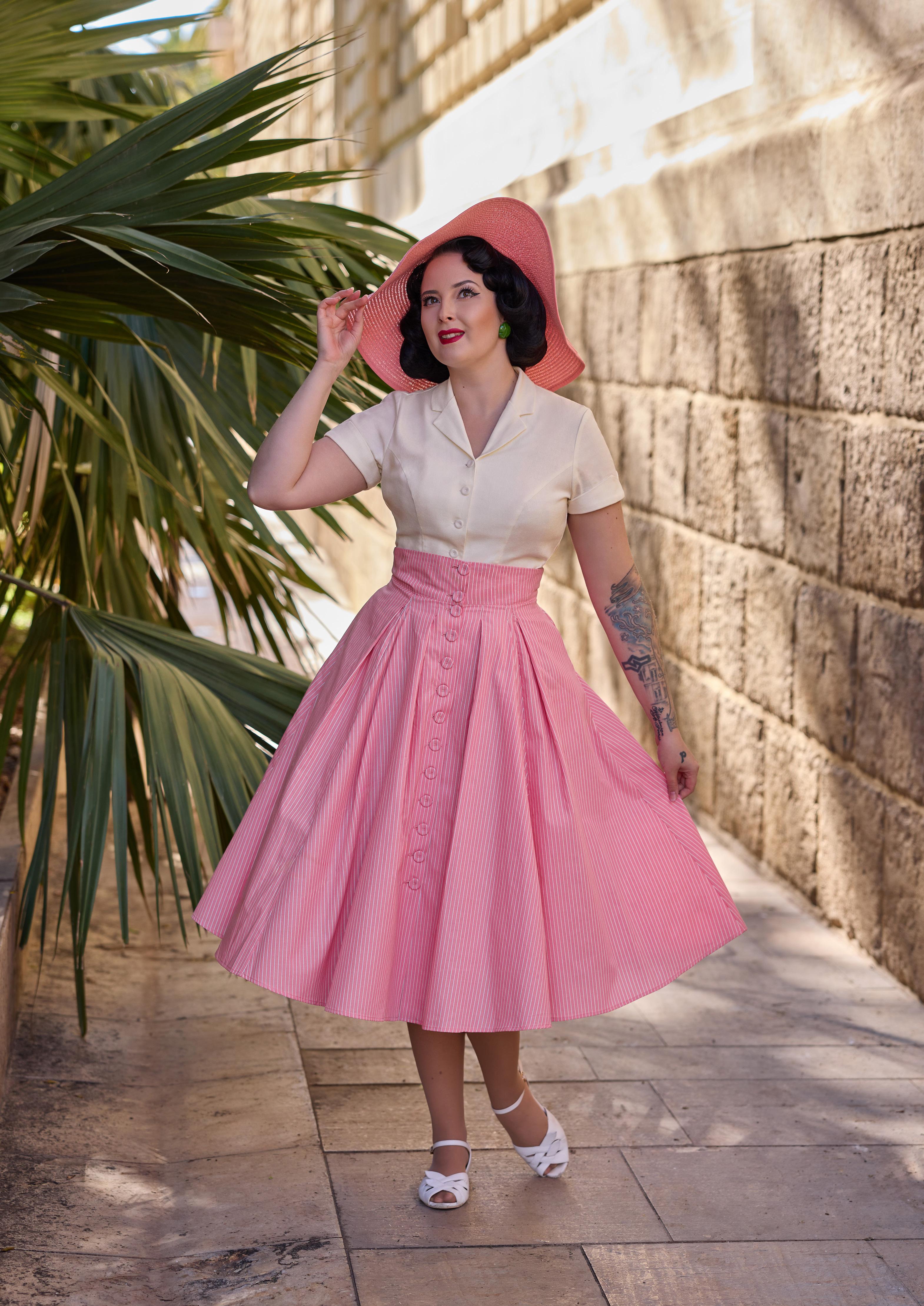 A cotton skirt inspired by 1940s silhouettes with practical pockets, blending vintage utility and timeless Miss Candyfloss grace.
