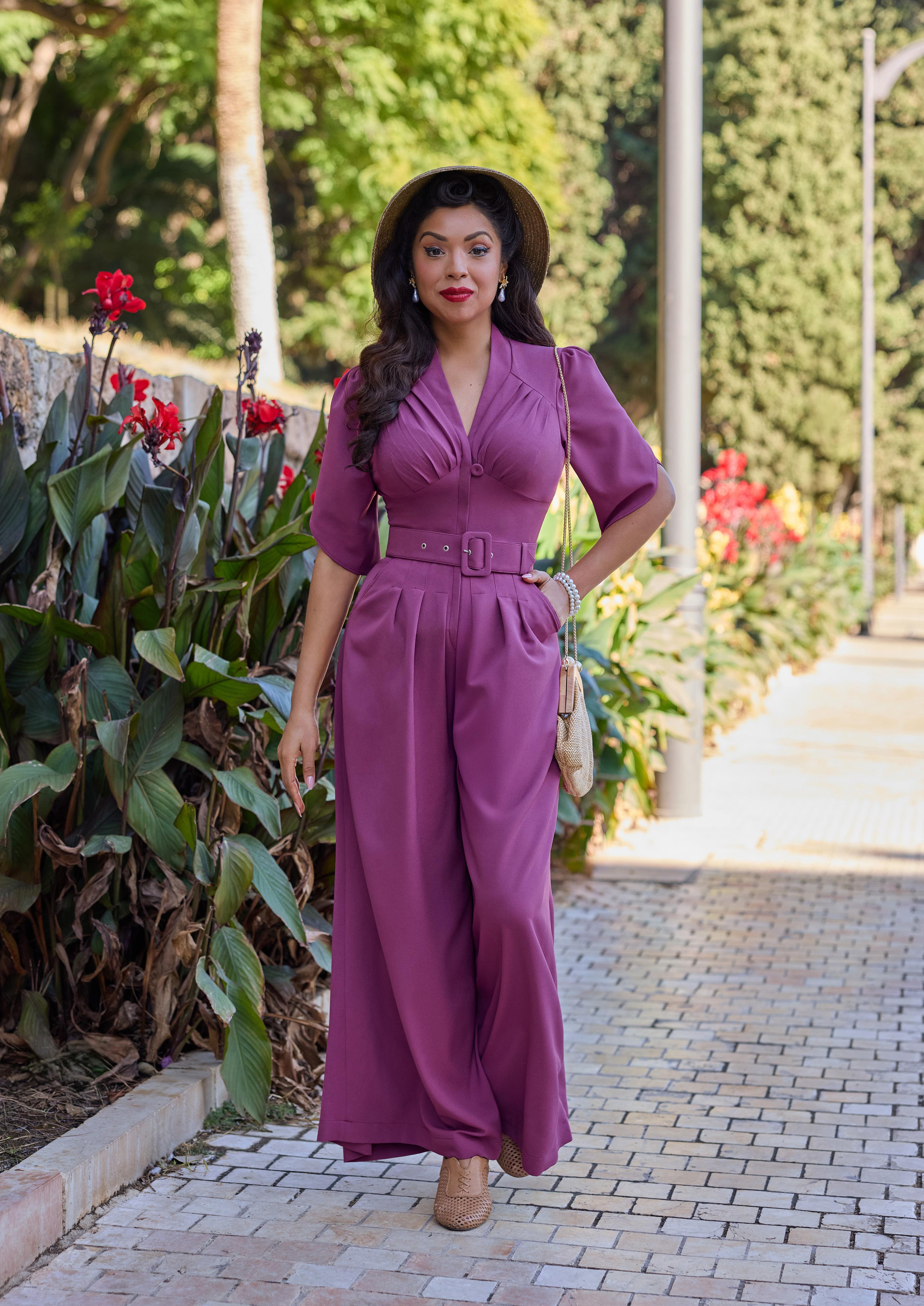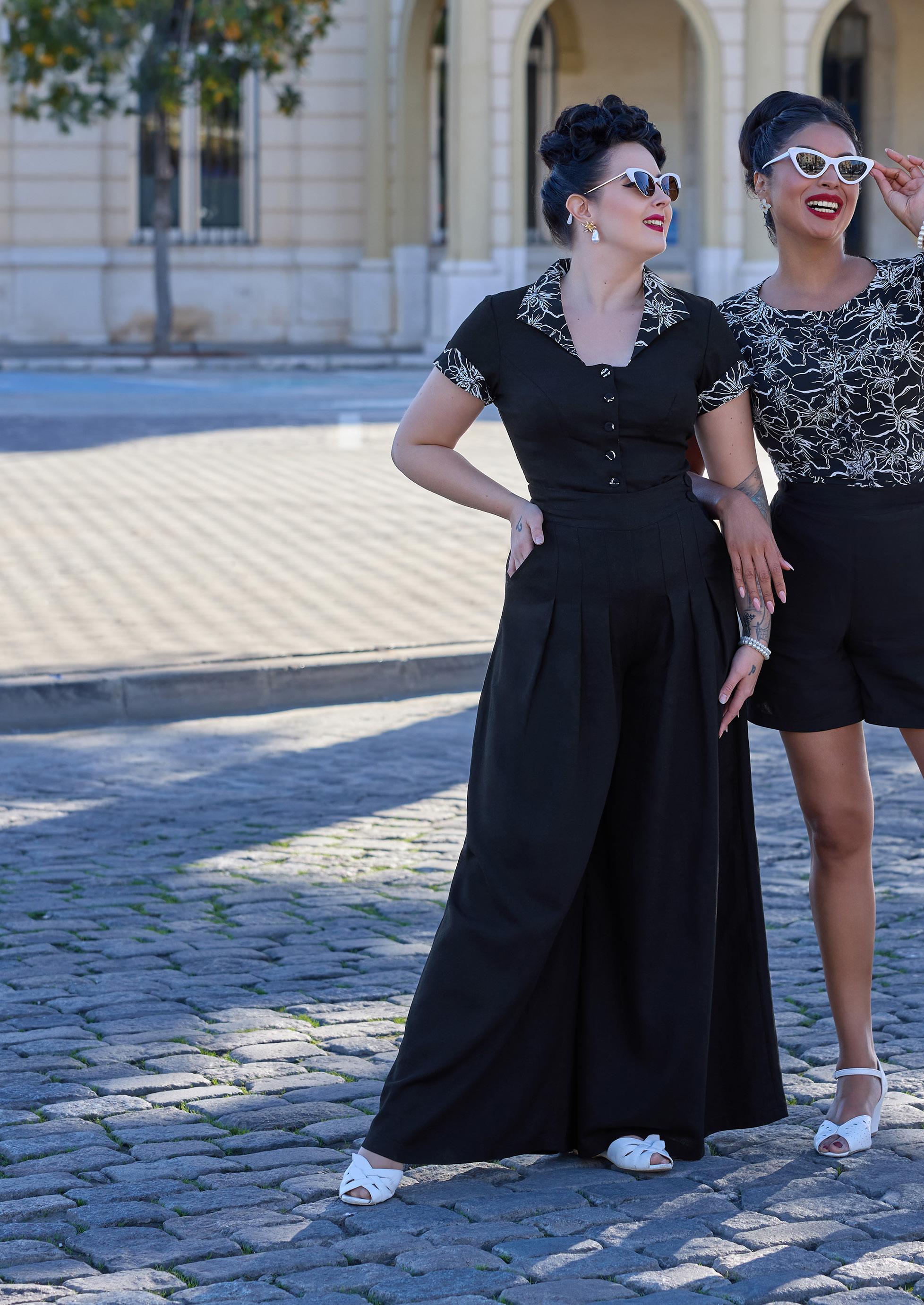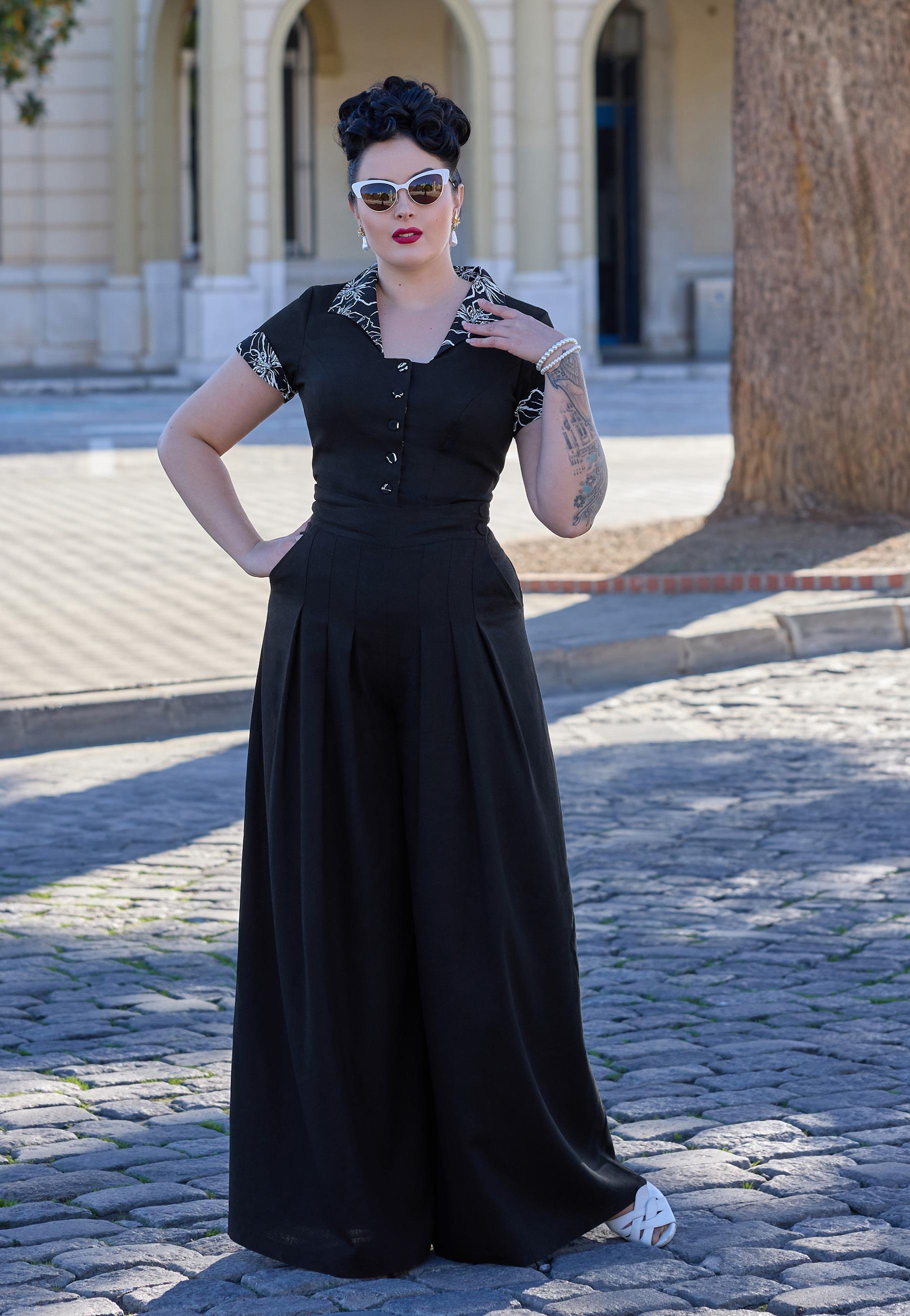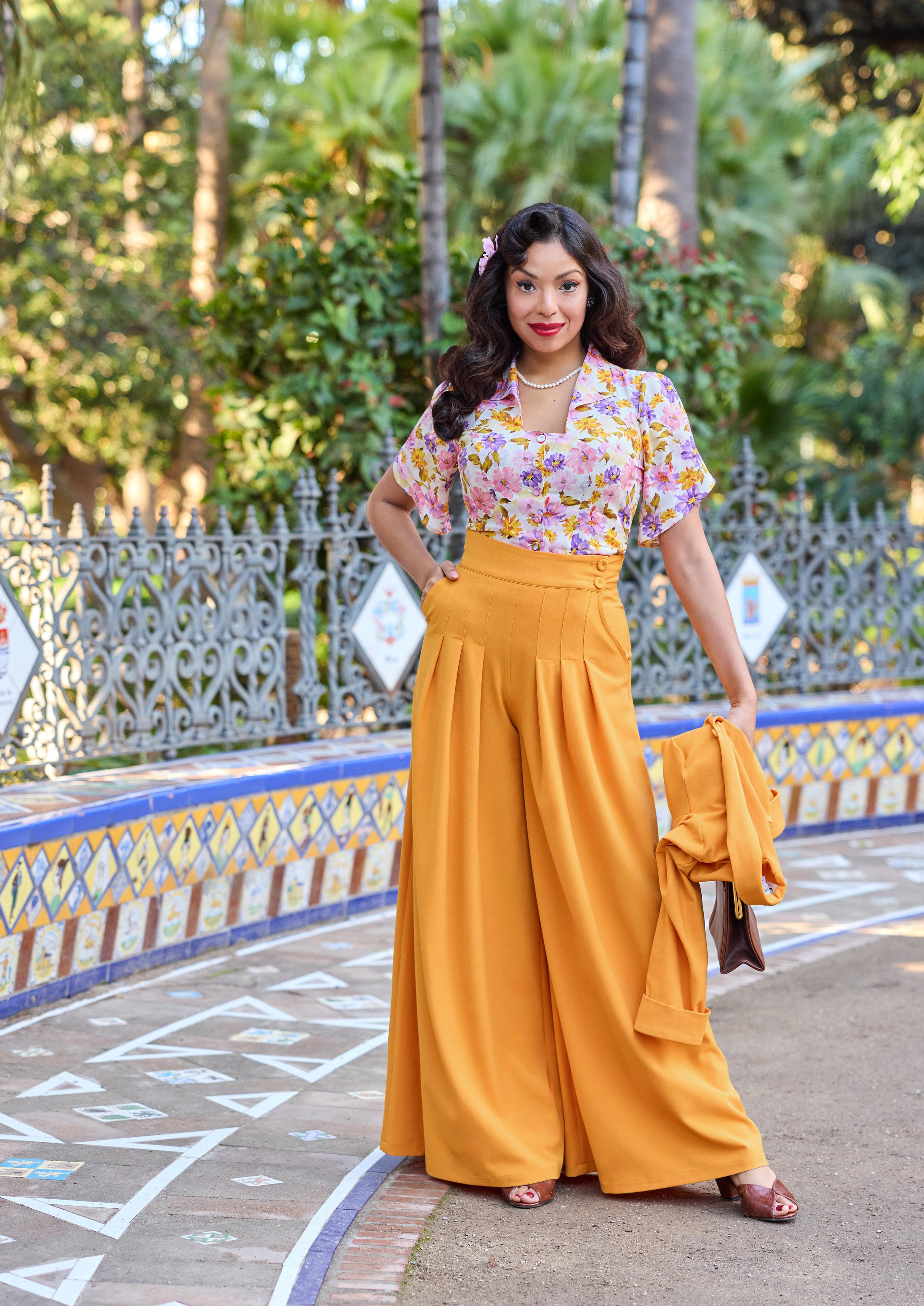 Elegant 1940s-style breezy summer palazzo culottest with a hidden zipper, combining vintage charm with modern convenience for warm days.