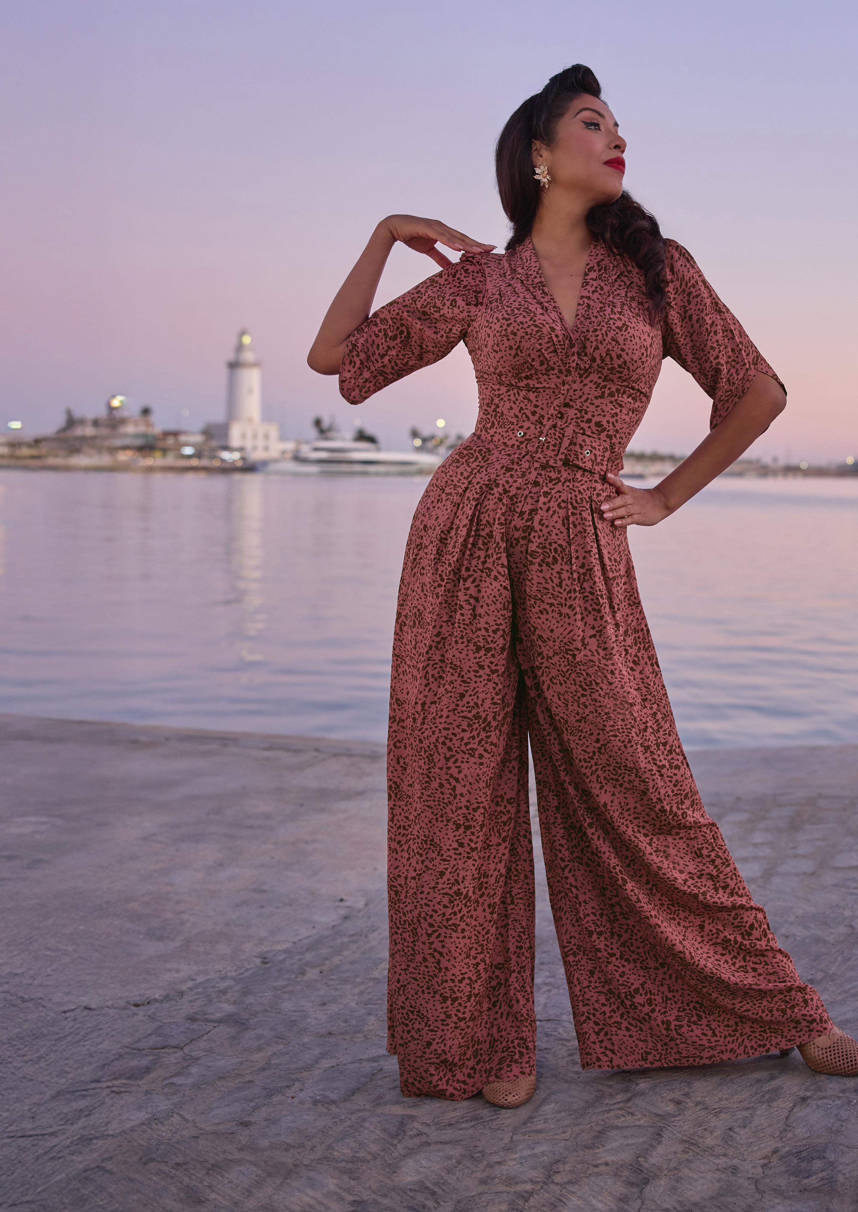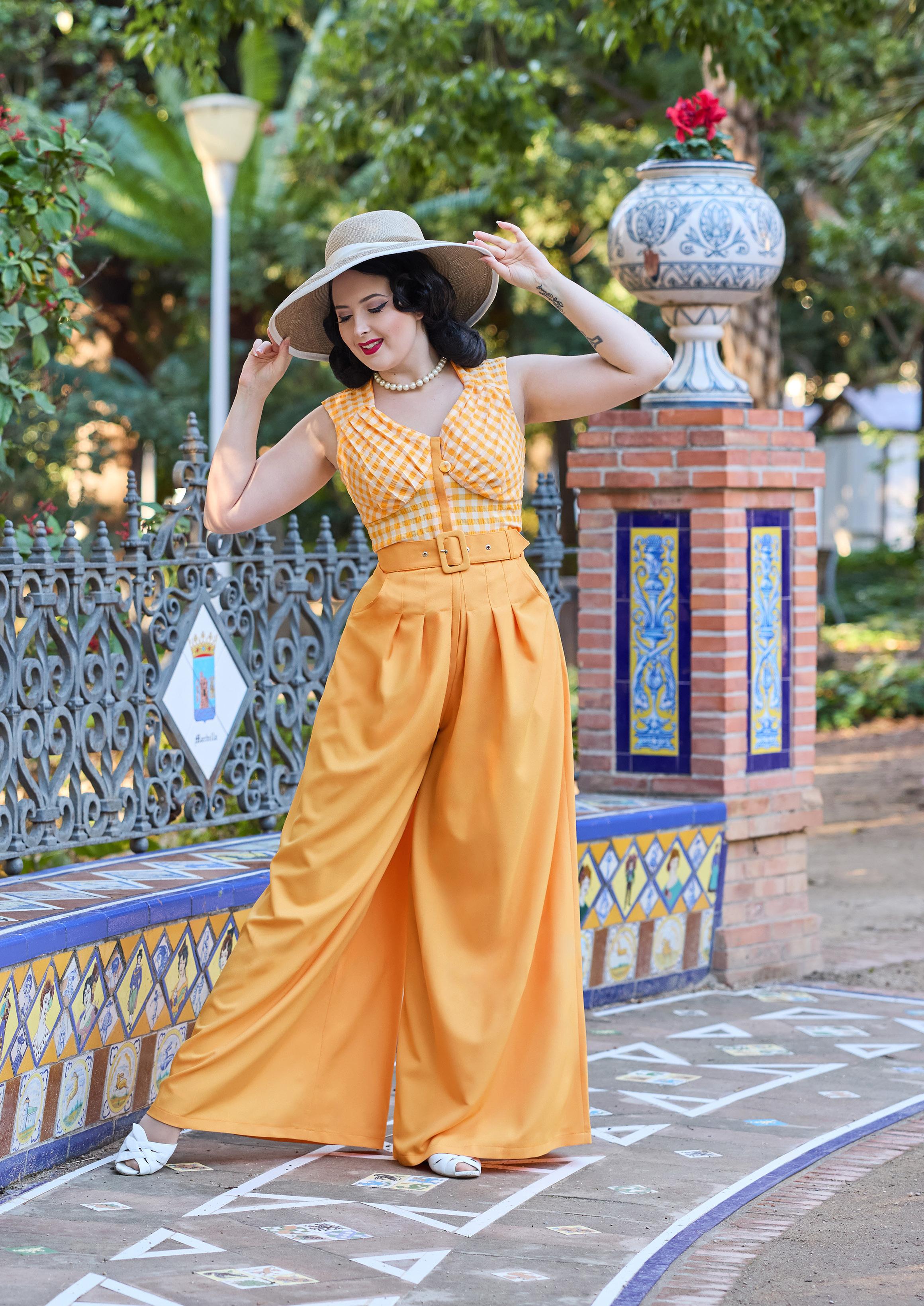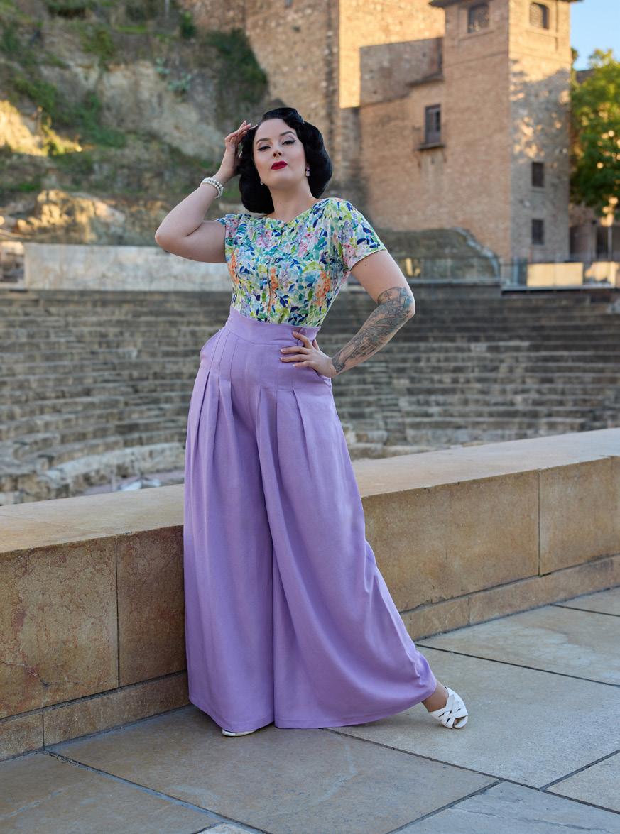 Elegant 1940s-style breezy summer palazzo culottest with a hidden zipper, combining vintage charm with modern convenience for warm days.