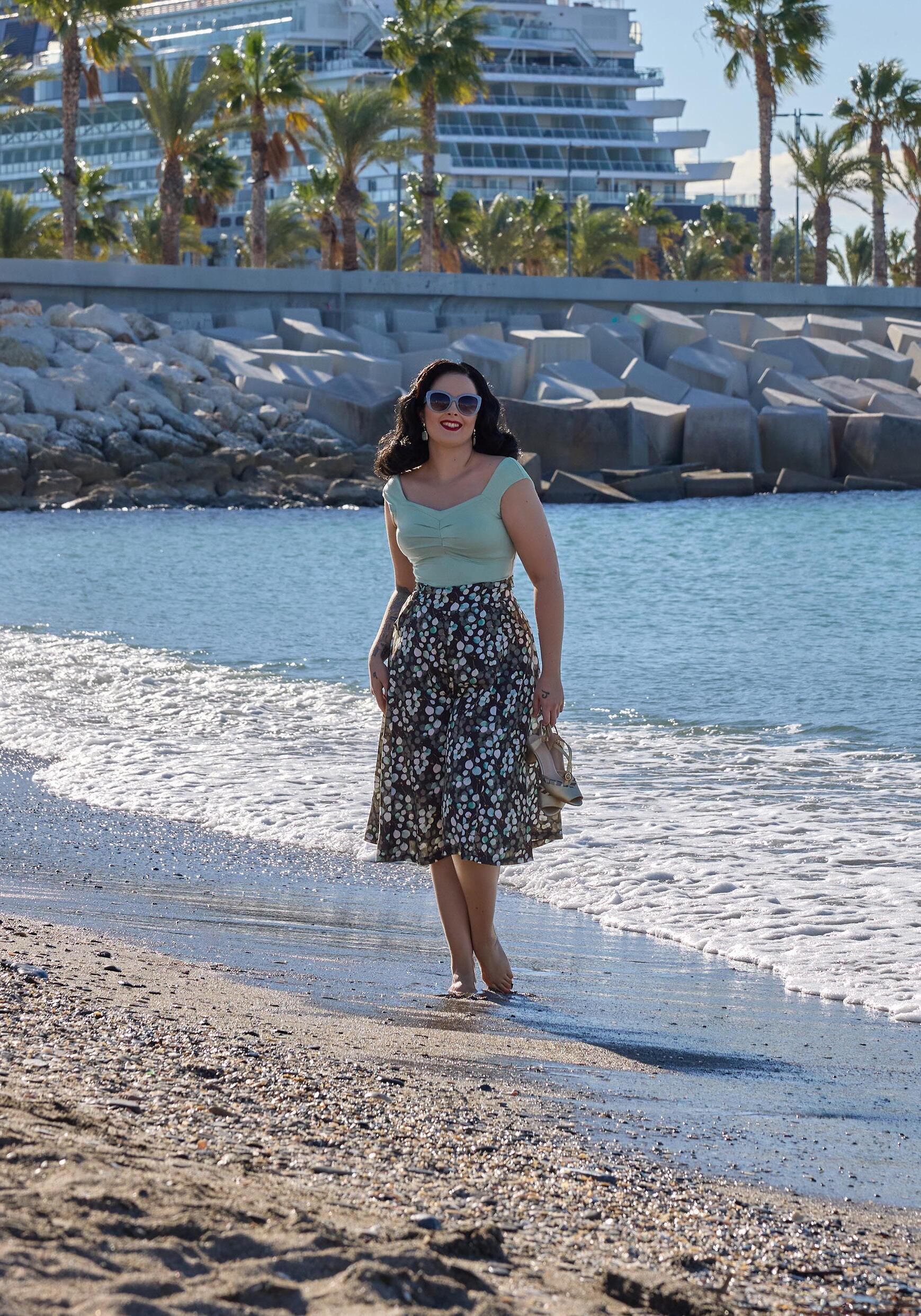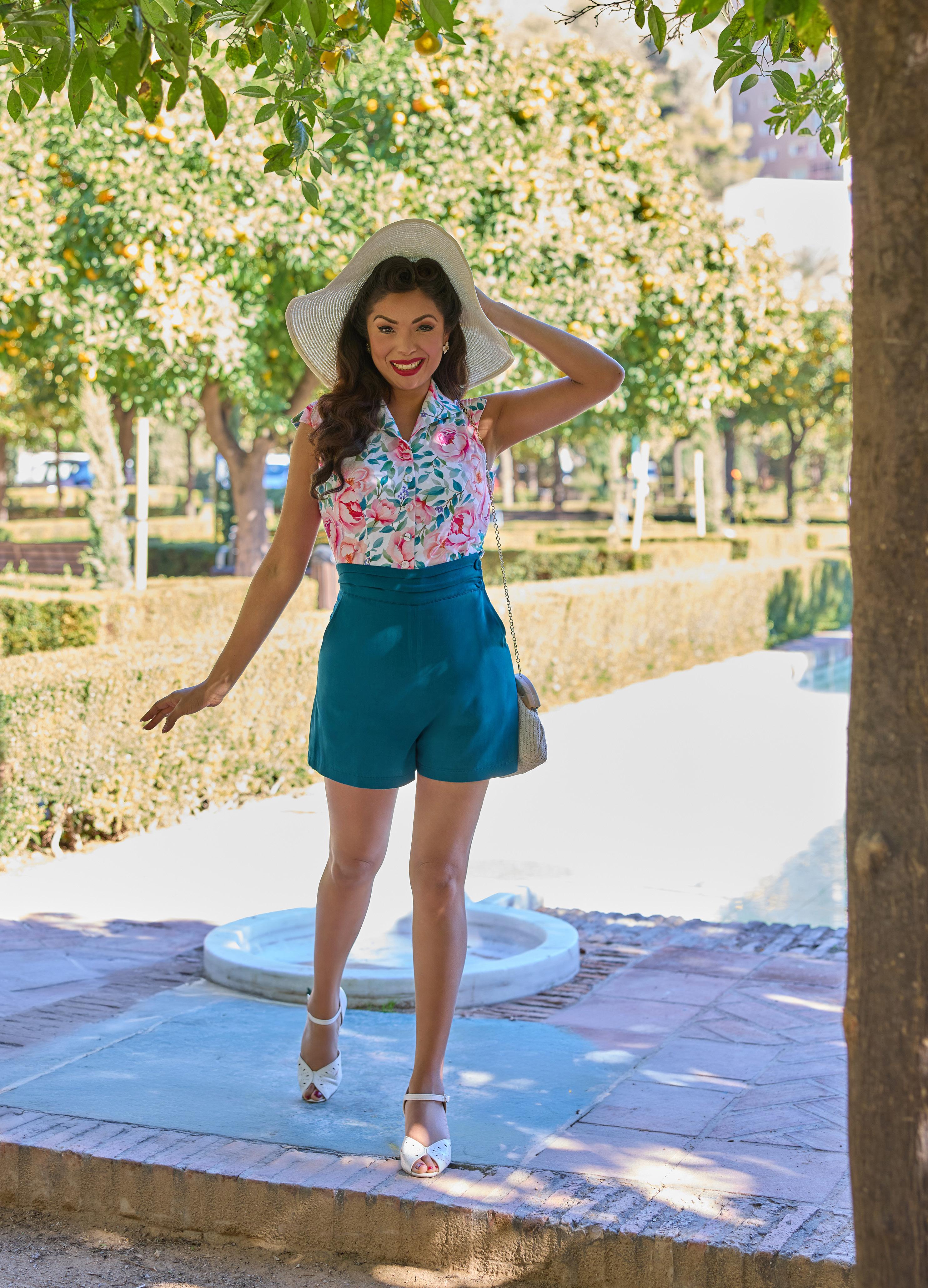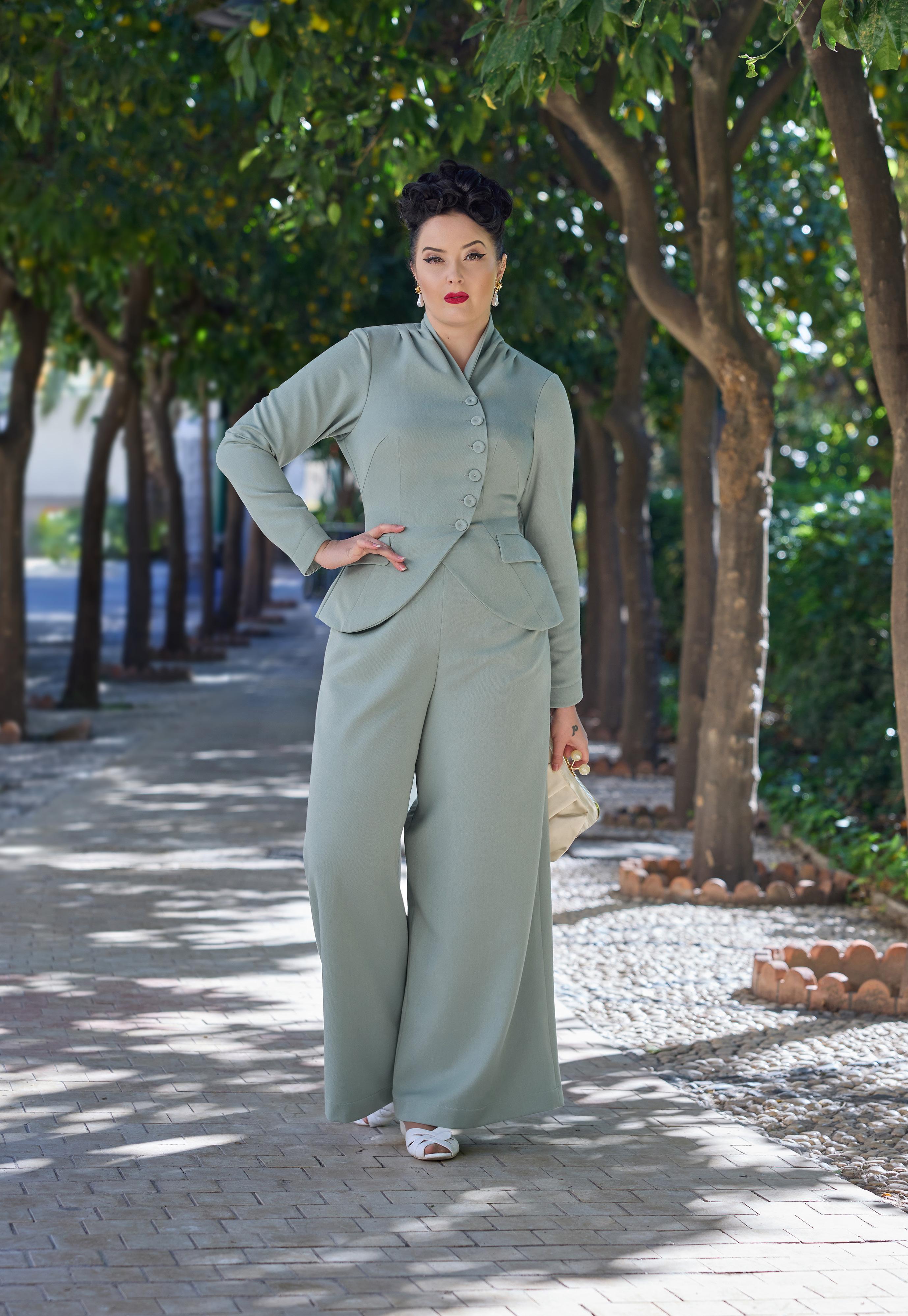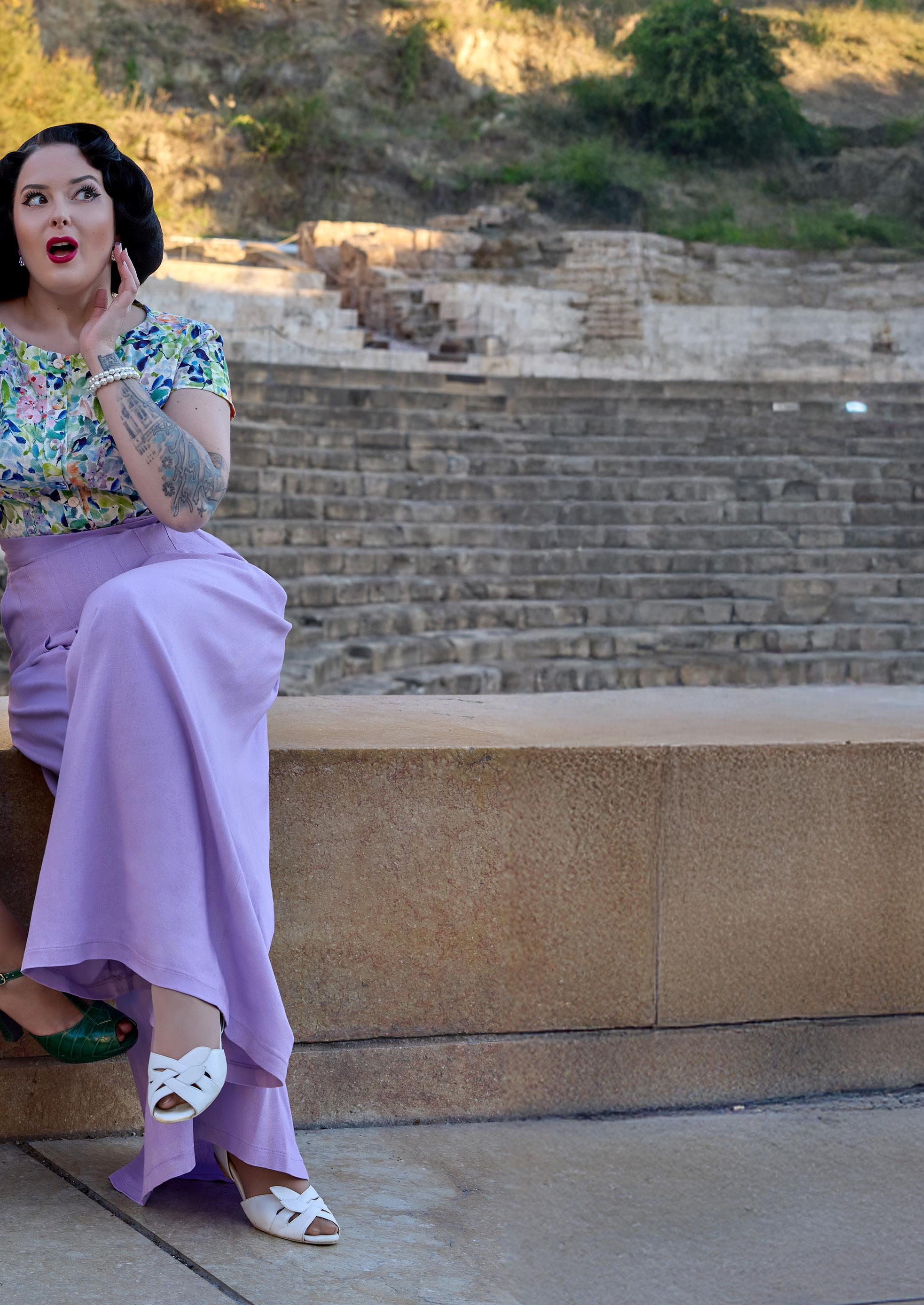 Elegant 1940s-style breezy summer palazzo culottest with a hidden zipper, combining vintage charm with modern convenience for warm days.