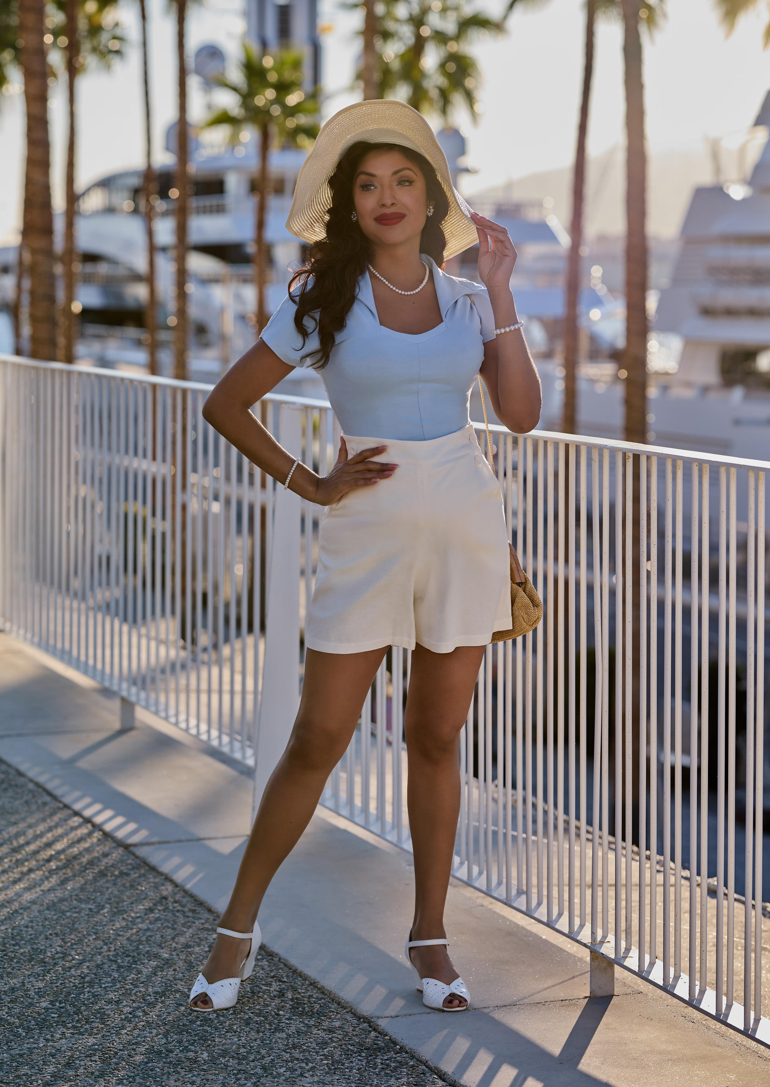 A linen blouse with a classic Chelsea collar and breezy short sleeves, embodying effortless elegance in true Miss Candyfloss style.