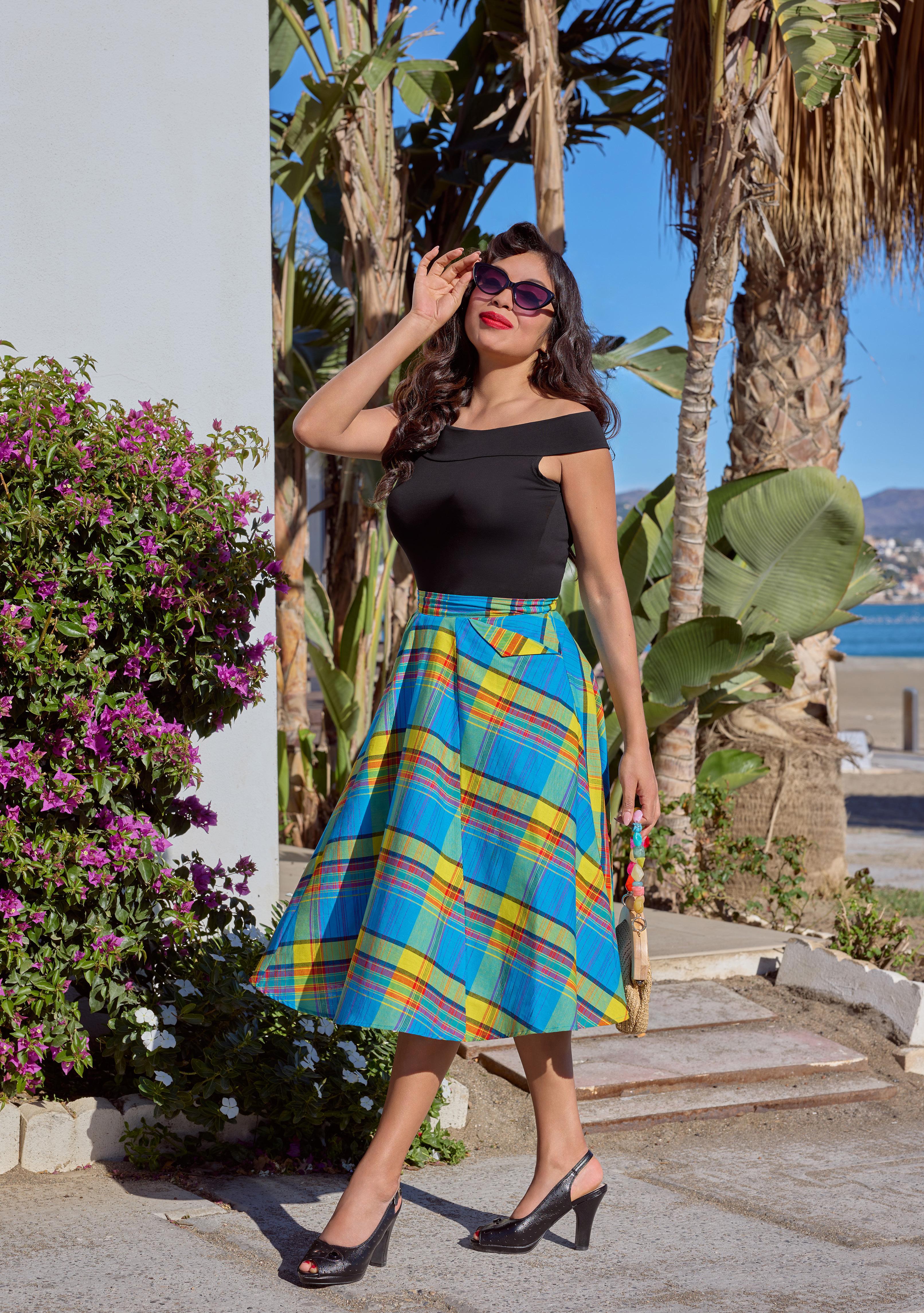 A playful tartan swing skirt that twirls with classic charm, capturing the timeless whimsy of Miss Candyfloss.