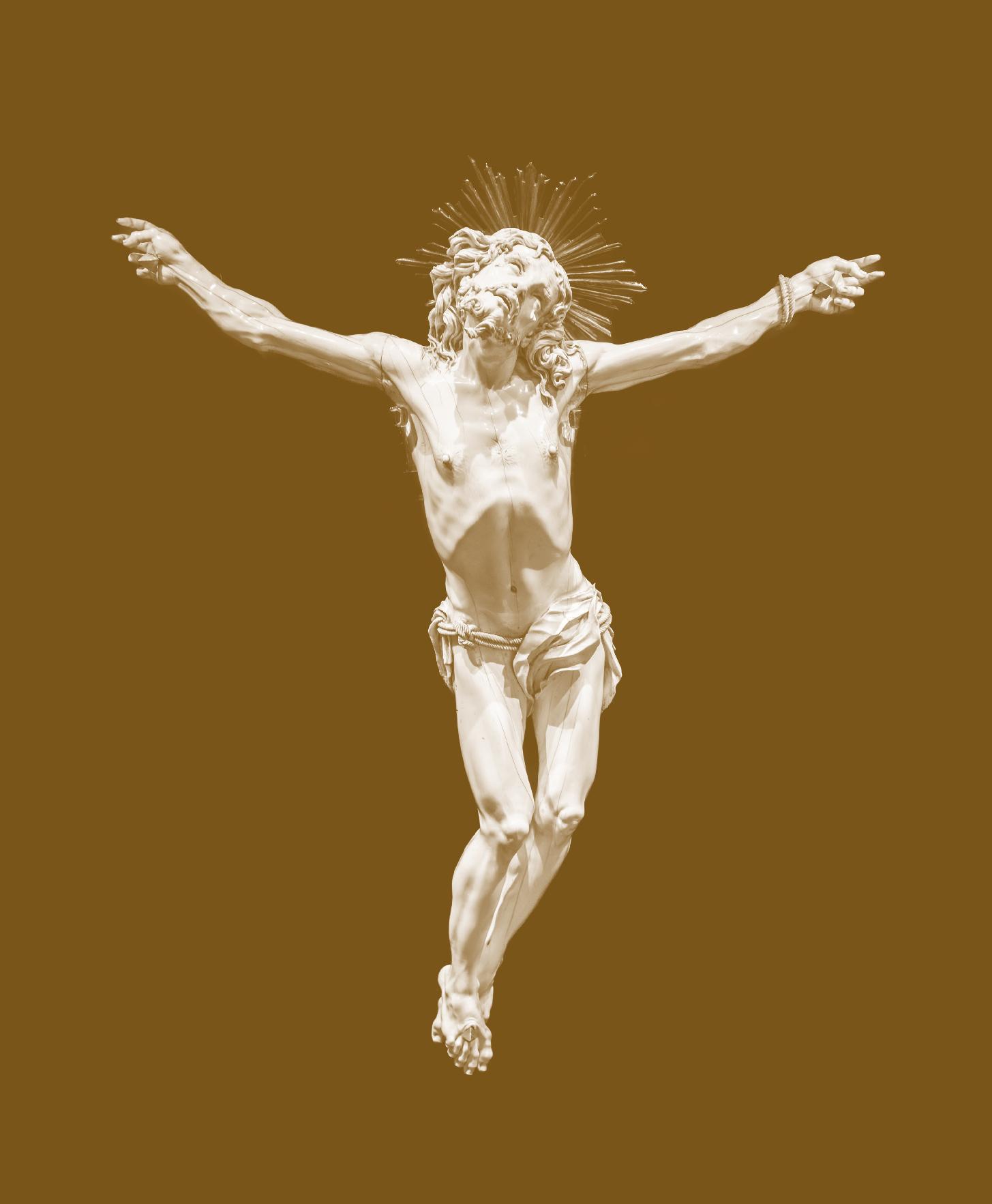 f’ħames Slaleb Griegi li jirrappreżentaw il‑ħames pjagi ta’ Kristu (toqob tal‑imsiemer f’idejh, toqob tal‑imsiemer f’saqajh, ferita tal‑lanza f’ġenbu, feriti madwar rasu mill‑kuruna tax‑xewk u l‑marki mill‑flaġellazzjoni). Jista’ jkun ukoll li jirrappreżenta lil Kristu u lill‑erba’ Evanġelisti.