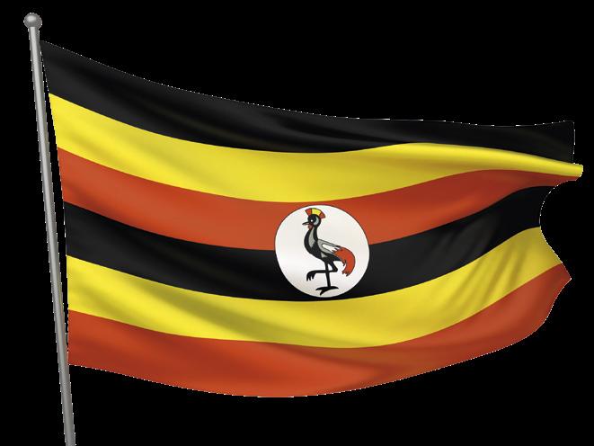 hija Kampala. Il‑bandiera tikkonsisti f’6 strixxi orizzontali ta’ lewn iswed, isfar u aħmar wara xulxin li jiġu ripetuti. L‑Uganda ħadet l‑indipendenza tagħha minn mal‑Brittanja fis‑sena 1962. Il‑klima tal‑pajjiż hija waħda moderata tul is‑sena kollha, bi 12‑il siegħa dawl kuljum. Il‑valangi ta’ tajn u l‑għargħar huma żewġ diżastri naturali li jolqtu lil dan il‑pajjiż. L‑Ingliż u s‑Swaħili huma ż‑żewġ lingwi uffiċjali, iżda hemm
