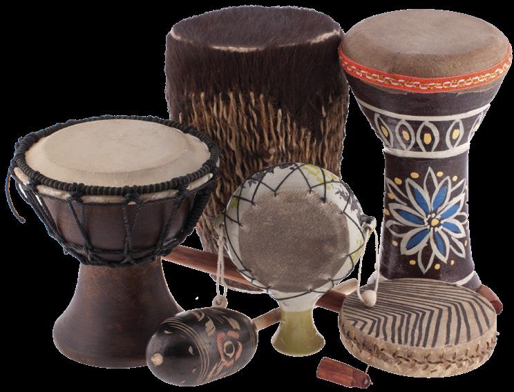 bħalna, jistgħu jixegħlu r‑radju jew t‑televixin u jisimgħu xi diska, imma jridu joħolqu l‑mużika huma stess, billi l‑ewwel u qabel kollox jagħmlu l‑istrumenti. L‑aktar strument komuni huwa t‑tanbur. Dan jagħmluh billi jħaffru zokk oħxon f’għamla ta’ barmil u jgħattu l‑wiċċ b’biċċa ġilda mnixxfa ta’ xi annimal li jkun inqatel għall‑ikel. L‑għatu tal‑ġilda jridu jwaħħluh sew li ma jinqalax meta jħabbtu fuqu bil‑pala ta’ jdejhom. Għal ħsejjes varji jagħmlu tnabar ta’ daqs u għamla differenti li meta jindaqqu kollha flimkien jagħmlu melodija sabiħa ħafna. It‑tfal