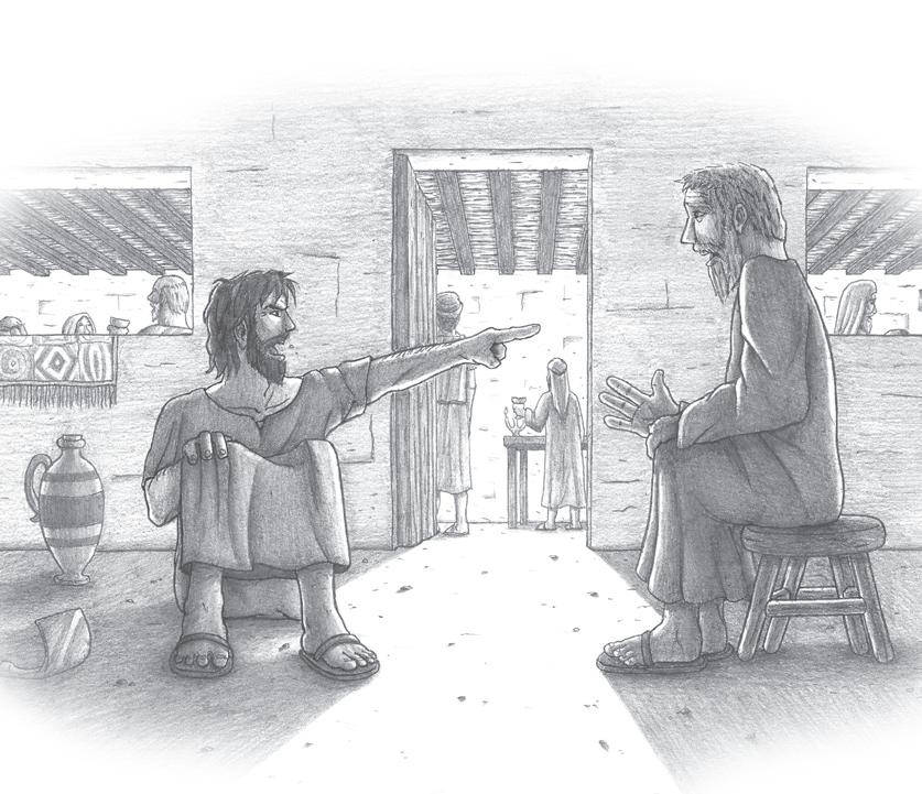 長男は家に入ろうと もしませんでした。 それで、父親は出て きて、家に入るよう なだめました。