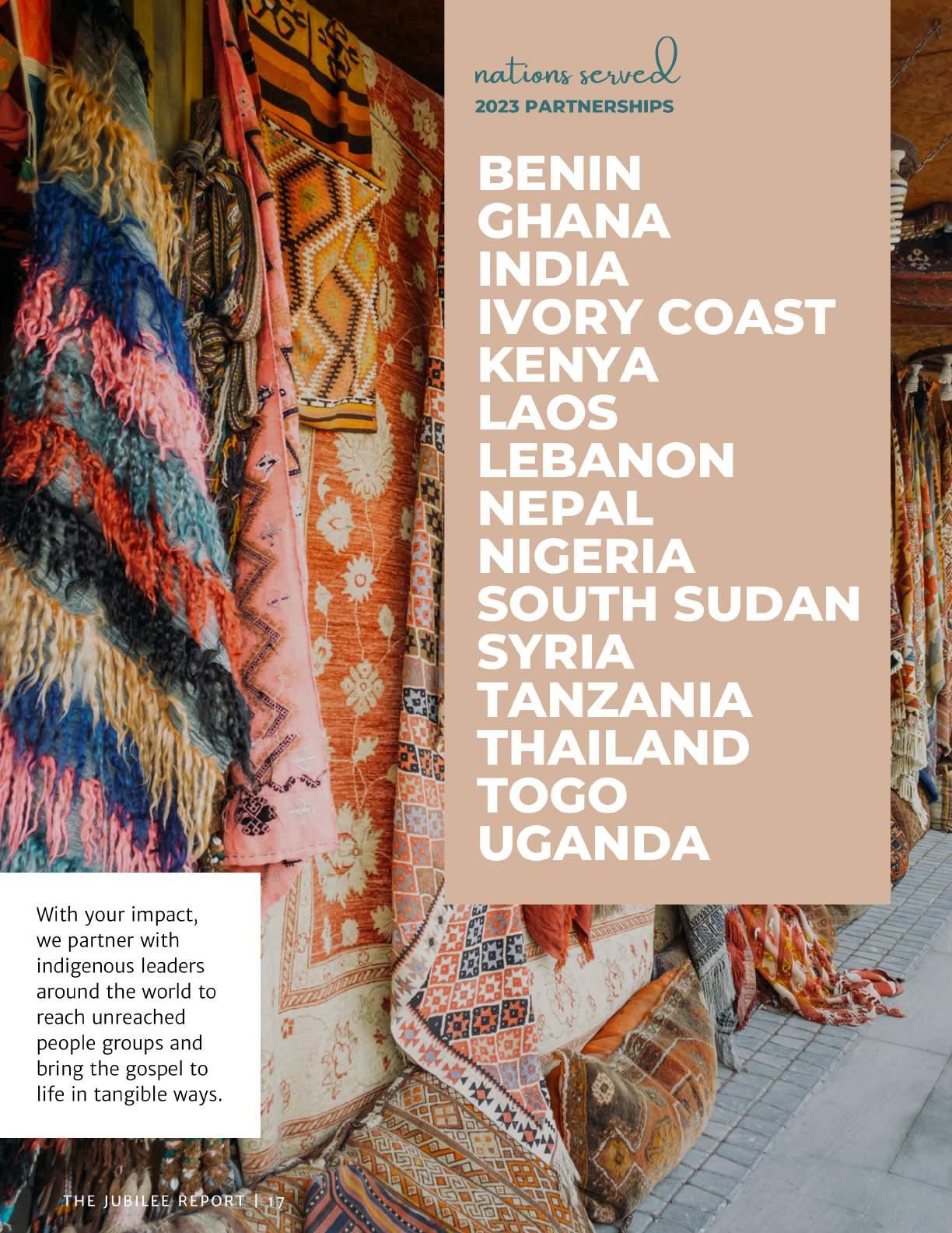 Each year, we set aside time to reflect on the impact your faithful support has made around the world. In response to this reflection, we celebrate and share incredible stories of impact in the Jubilee Report!