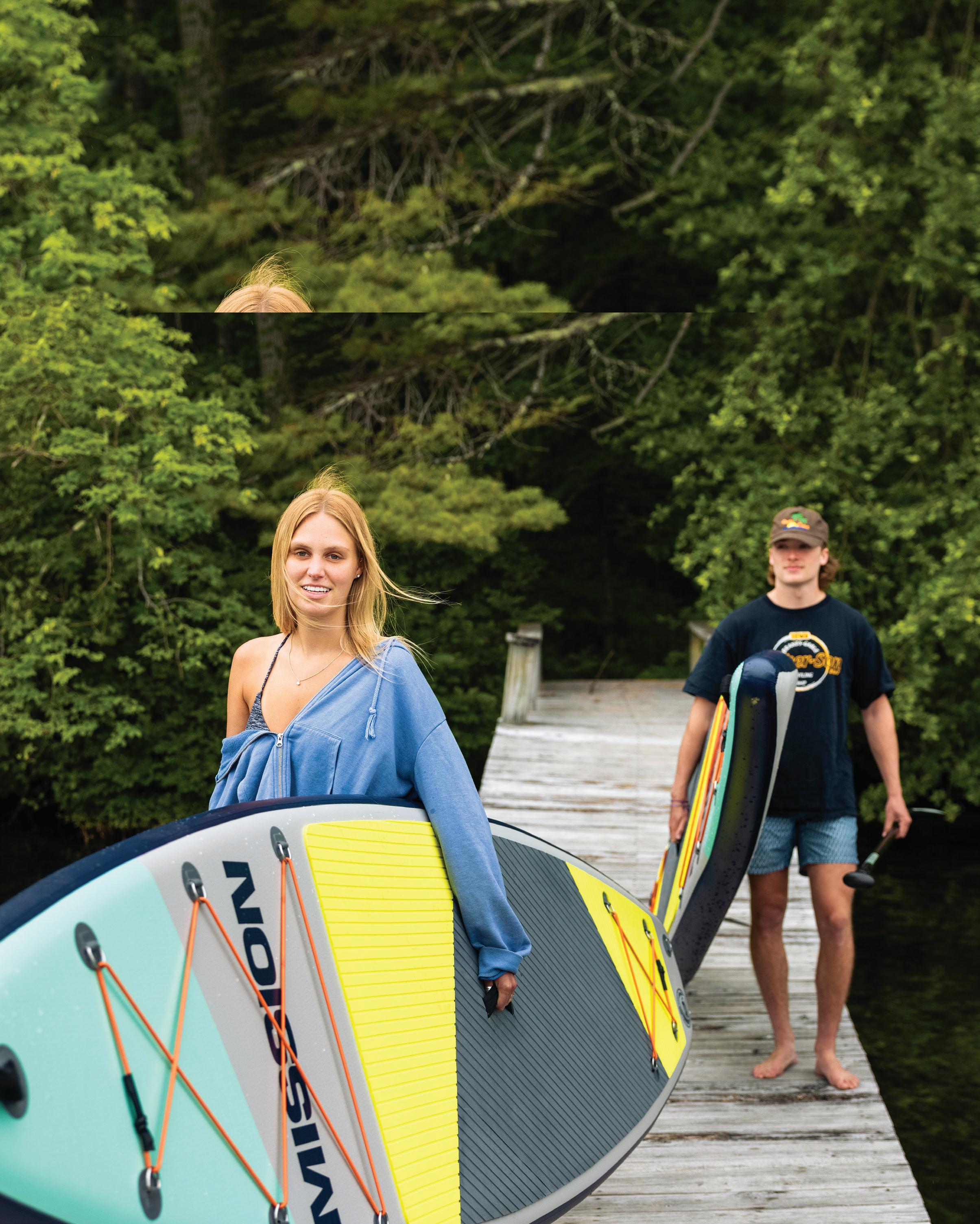 Let imaginations and hashtagging run wild on this stable surf platform (which even includes a camera mount, come to think of it). Kids want to try to surf tandem? Sure, give it a whirl. Want to paddle out and around the swim dock? No problem. Drag you behind the pontoon? Just add rope. This longboard belongs lakeside, and so do you.