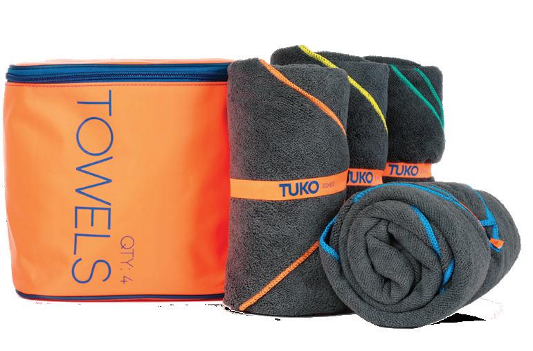 Each towel is color-coded so everyone will always know which one is theirs. Buy TUKO as a single, or in a tidy four-pack that includes a water-resistant carrying case.