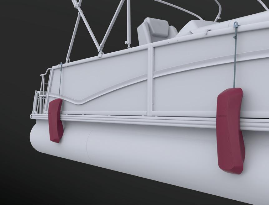 Each REEF DECK comes with a detachable hard-shell cooler that doubles as a step for easy-on/easy-off access to the boat. In addition, our unique fender attachment system will securely connect your mat to the front of most pontoon boats.
