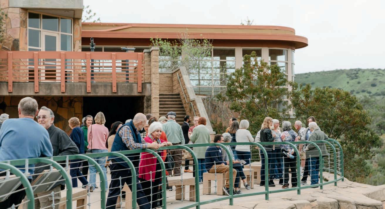 Above: MTRP Volunteers mingle on the terrace and take in the view of Mission Gorge