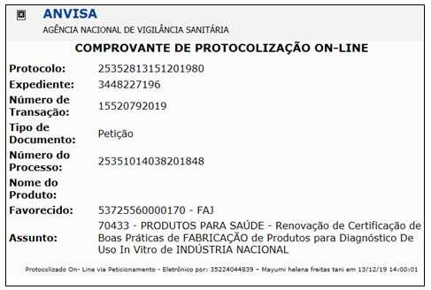 O produto foi desenvolvido e encaminhado ao laboratório especializado para realizar os ensaios obrigatórios. Atualmente estamos em fase final de ensaios específicos, que deverão ser finalizado até início de fevereiro de 2020 para então ser encaminhado à ANVISA para o registro do produto.