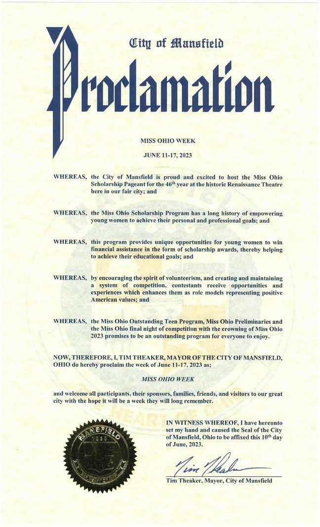 The Mansfield Noon Optimist Club is proud to sponsor the Miss Ohio Scholarship Program by providing an Optimist Service Scholarship