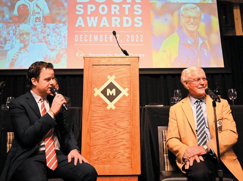 The Missouri Athletic Club’s Missouri Room saw a sold-out crowd on Wednesday, Dec. 7 when it was the site of The 53rd Jack Buck Sports Awards presented by Redbird Carriers. The event celebrated the accomplishments of the best in St. Louis sports. For more than a half-century, an impressive list of Hall of Famers, All-Stars and coaching greats have been honored at this banquet, and this year was no exception. Every banquet since its inception in 1970 has aired on KMOX Radio.