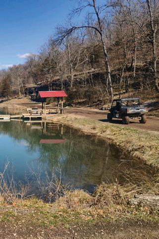 Further to the southwest in McDonald County, more than one hundred miles of trails await SXS enthusiasts at Rush Springs Ranch (RushSpringsRanch.com) near Jane. SXS trails pass by bluff-top vistas and through dense woodlands as they meander across the ranch’s more than one thousand acres. Trails range from flat and fast to slow and rocky, though the latter may be more appropriate for rock-crawling vehicles. On a scenic ride, ranch visitors can also enjoy several walking trails, ponds, creek beds, and other natural features, including a small cave they can explore.