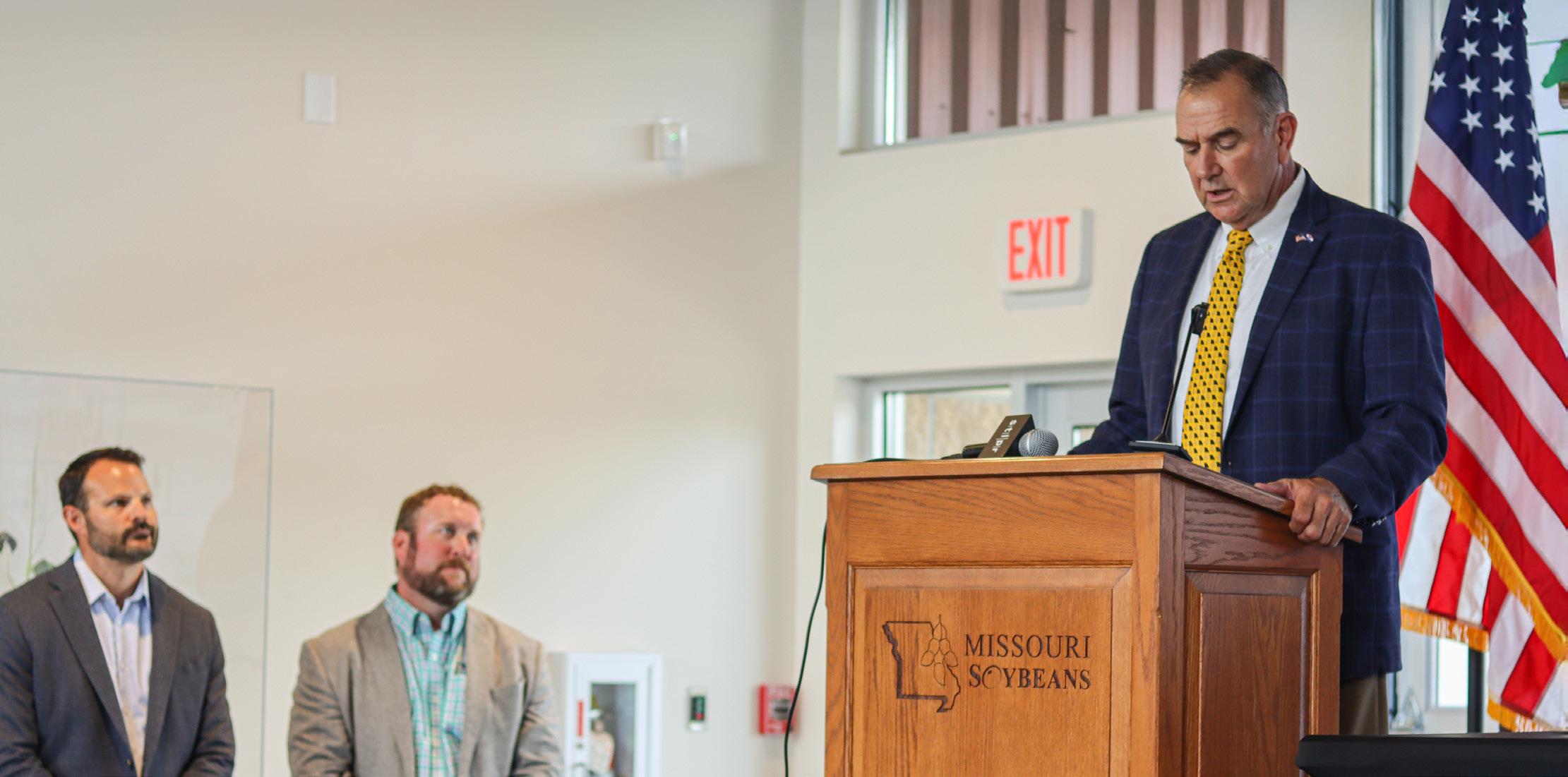 Here at home, we’ve already seen strong partnerships deliver results. On July 14, we proudly hosted Gov. Mike Kehoe as he signed the Water Preservation Act at our Center for Soy Innovation. This law protects Missouri’s most precious resource — water — and ensures continued access for farmers.