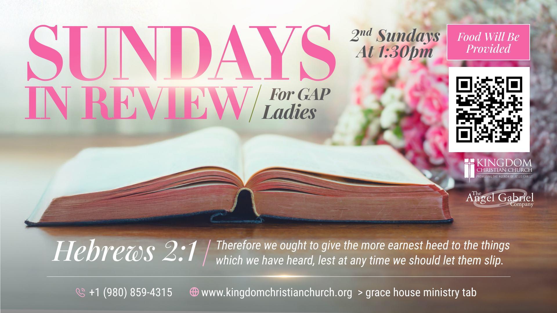 J in us r ur upc ming Sundays in Review n April 13! It will be a special time discussing the rich W rd r m ur Past r ver dinner This is an excellent pp rtunity t “give the m re earnest heed t the things we have heard”
