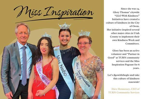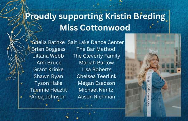 been attracted to the scholarship offerings, others inspired by family members or other role models who went through the program, and others even originally begrudgingly “volun-told” their responsibilities for helping with a competition. Whatever path led us to Miss Utah, our collective involvement continues to carry significant impact across the state.