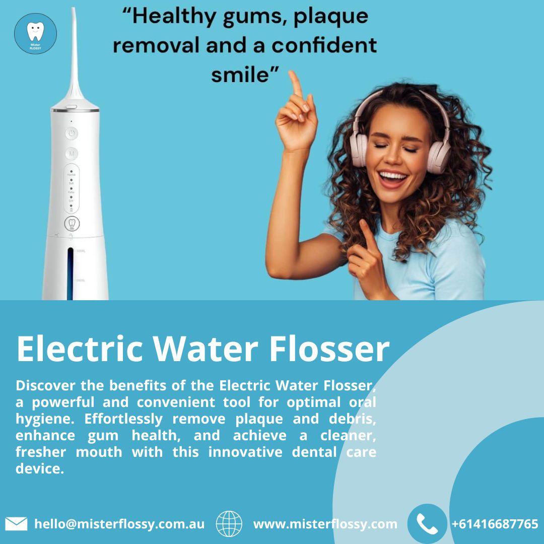 Behold the Electric Water Flosser: the revolutionary cleaning tool for integrated oral care! Cleaning between those dental interdental gaps has never been so easy without the pulling and struggling that were required with the other dental flosses. Our electric water flosser was designed to offer optimal cleaning through the water pressure and precise technology to deliver additional cleaning through the water pressure and remove plaque and debris from your teeth and gums. For this reason, when it comes to hitting and setting your preferred oral health standard, it has never been easier with this product due to its user-friendly features. For such reasons, today, get your water floater and feel the difference yourself. Be a part of our happy customers and opt for our electric water flosser now, which has been recognised as one of the best dental flossers in the present day. Visit Here - https://misterflossy.com.au/products/cordless-water-flosser